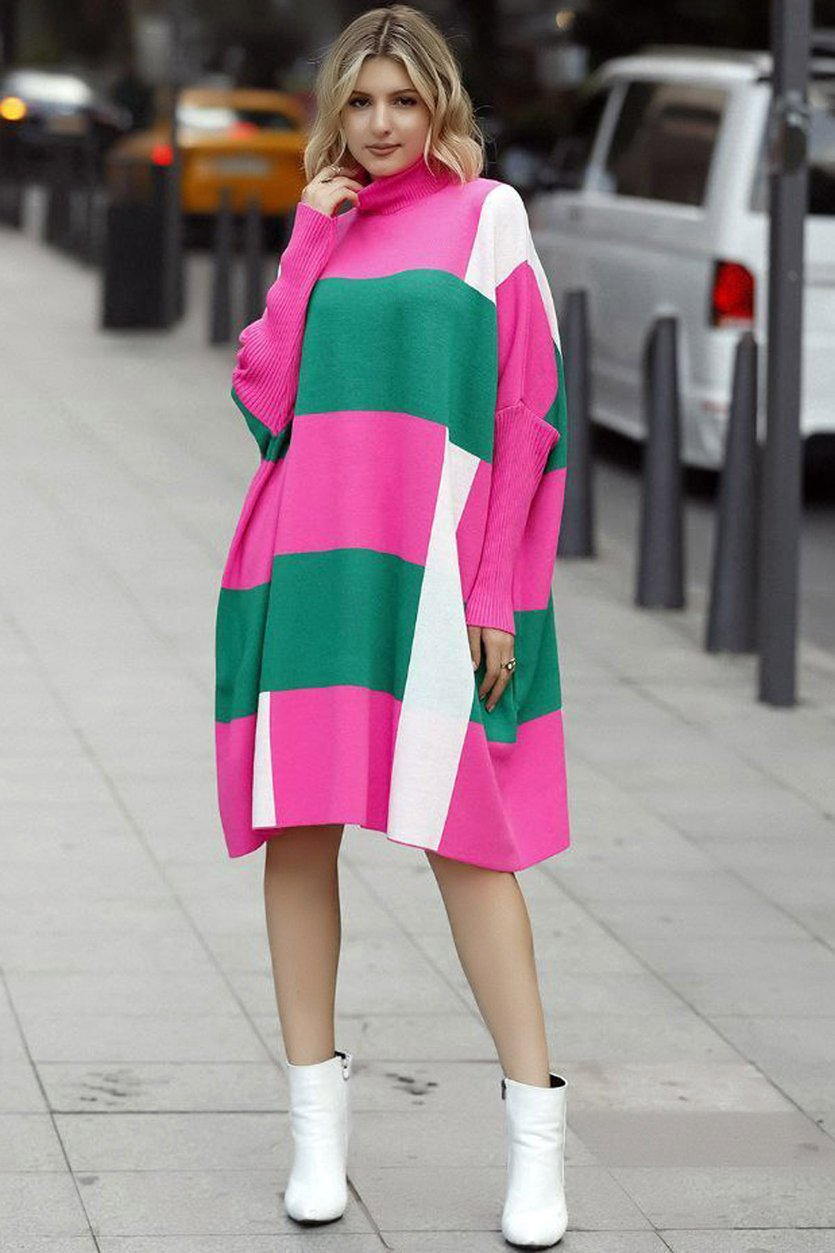 Balıkçı Yaka Uzun Fitilli Kollu Renk Bloklu Ekoseli Midi Boy Bol Kesim Kışlık Triko Panço Kazak Balıkçı Yaka Uzun Fitilli Kollu Renk Bloklu Ekoseli Midi Boy Bol Kesim Kışlık Triko Panço Kazak ALCH-00034 XL