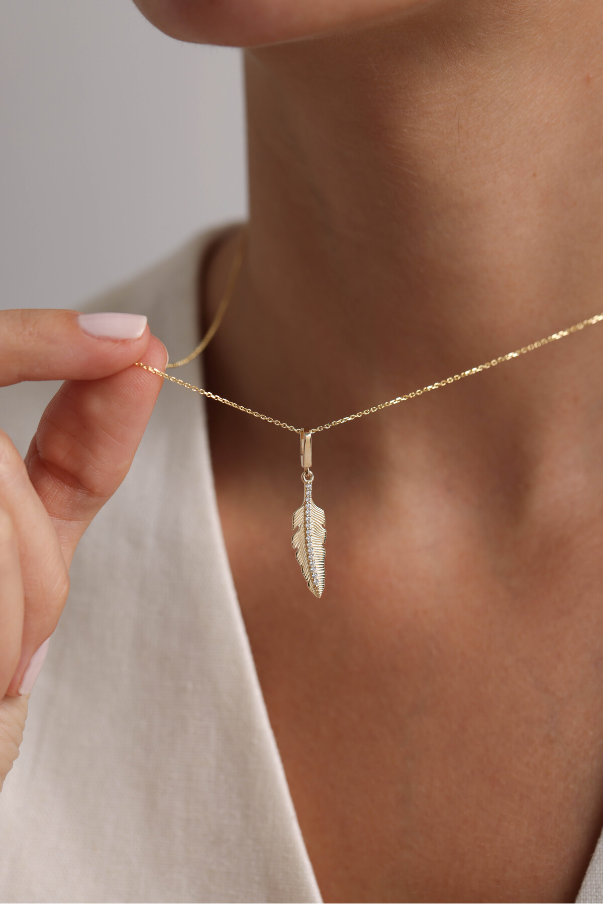 14 Ayar Altın Taşlı Yaprak Kolye Ucu 14 Ayar Altın Taşlı Yaprak Kolye Ucu gfku100146 تک سایز