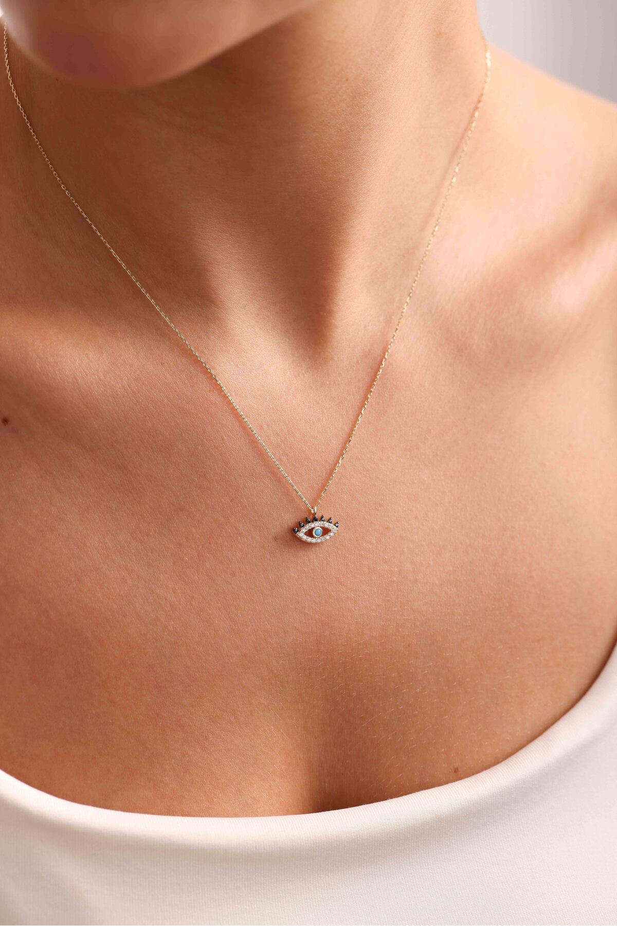 14 Ayar Altın Burgu Detaylı Mavi Taşlı Göz Kirpikli Mini Kolye Ucu 14 Ayar Altın Burgu Detaylı Mavi Taşlı Göz Kirpikli Mini Kolye Ucu gfku30035 تک سایز