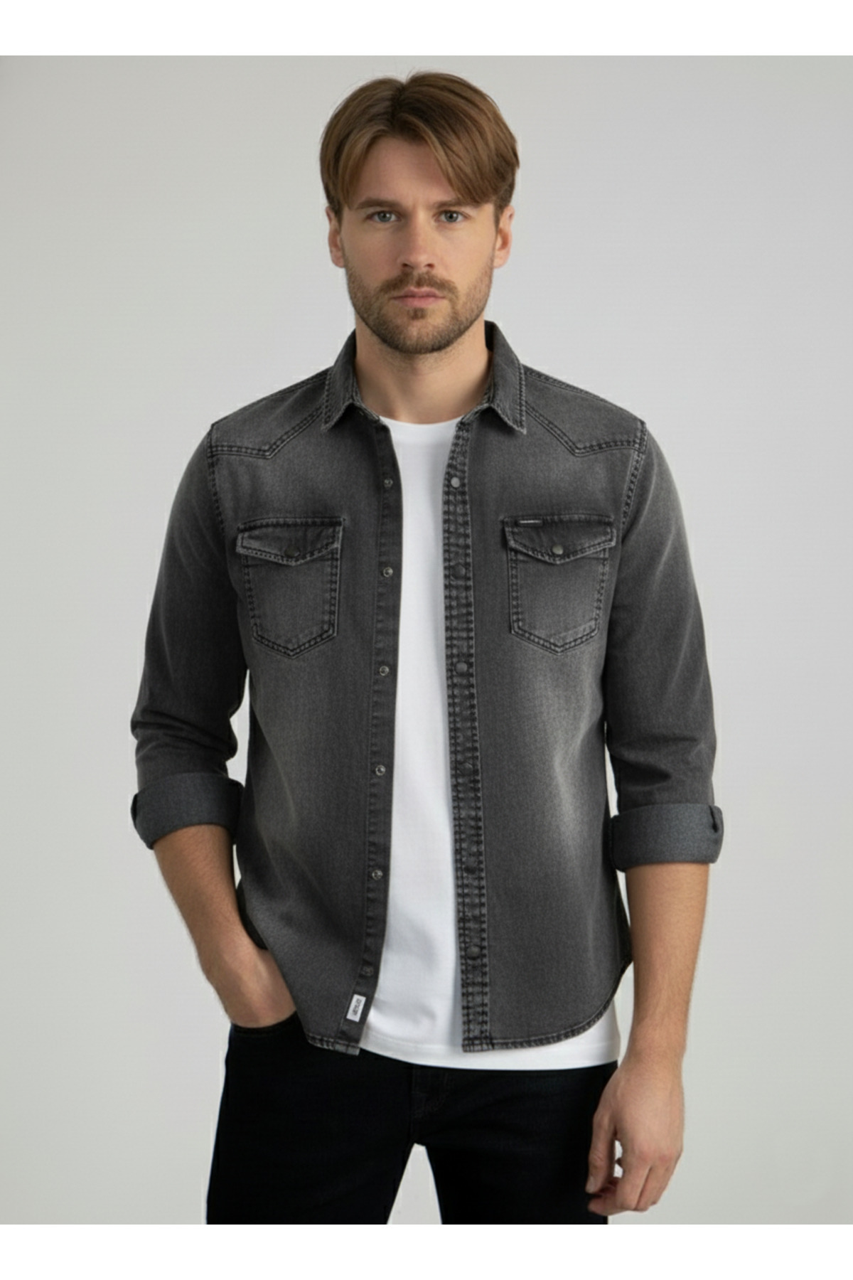 Likralı Kalın Renkli Kot Gömlek Likralı Kalın Renkli Kot Gömlek 35235 XL
