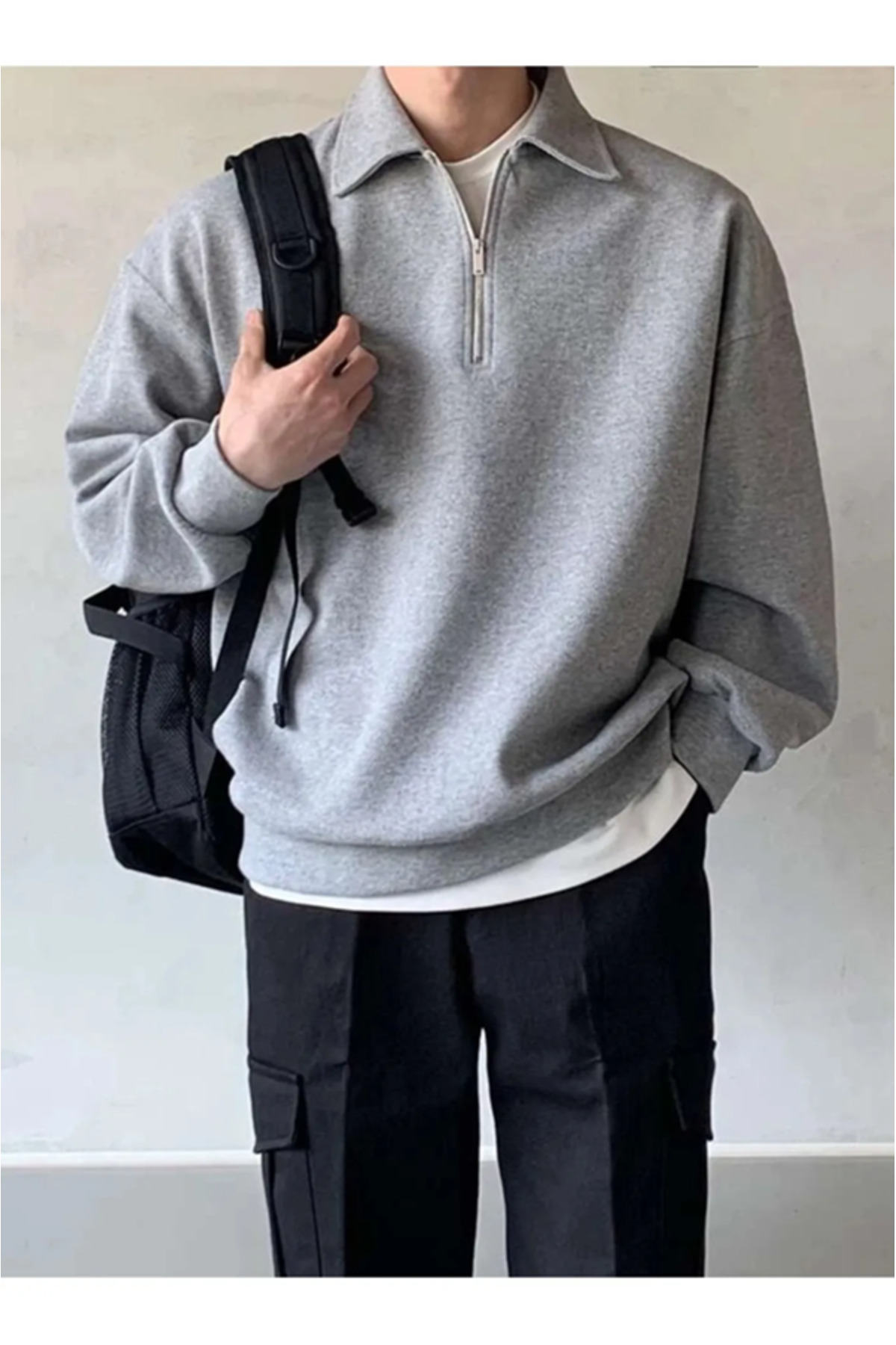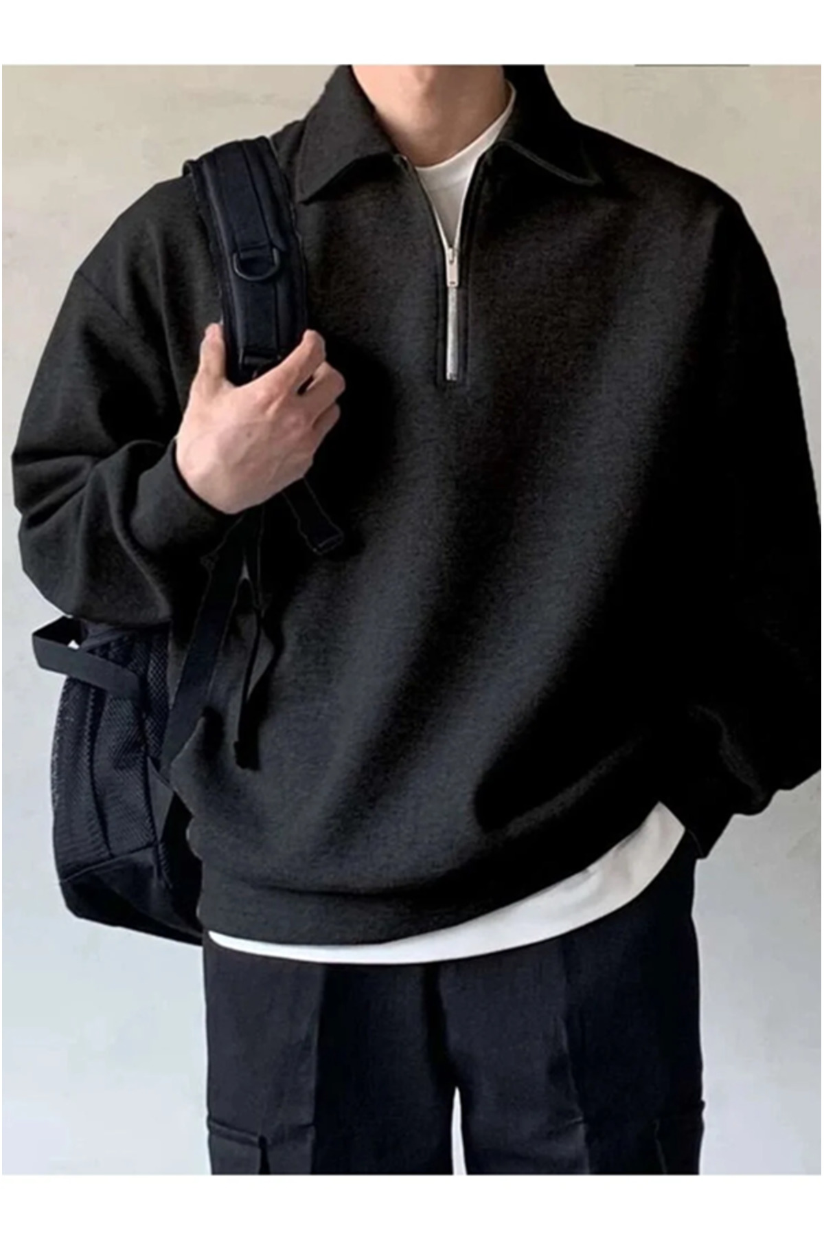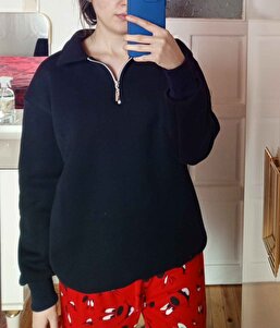 Erkek Polo Yaka Lacivert Oversize Sweatshirt Erkek Polo Yaka Lacivert Oversize Sweatshirt Yarım Fermuar Sweatshirt XL
