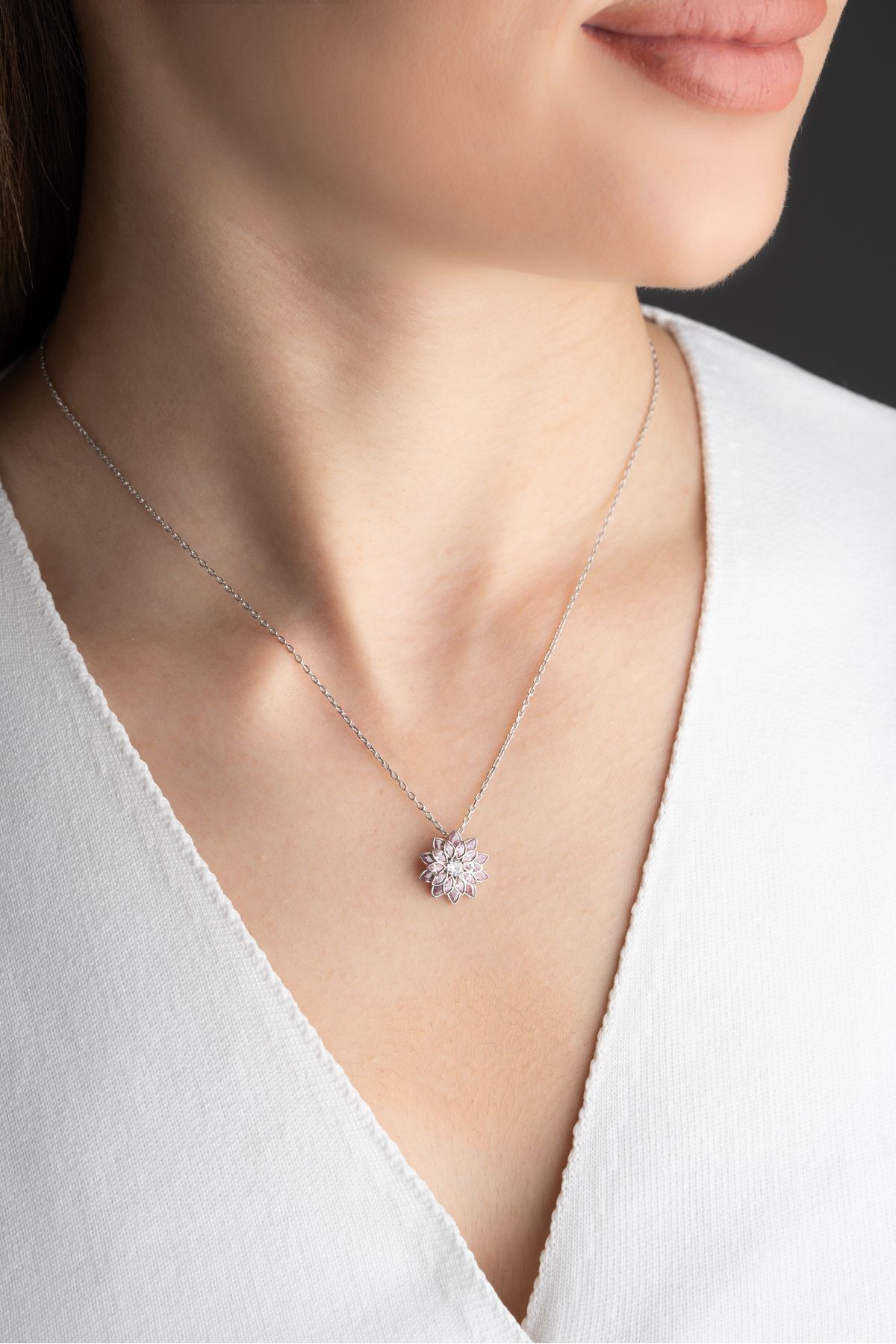 925 Ayar Gümüş Pembe Lotus Çiçeği Kolye 925 Ayar Gümüş Pembe Lotus Çiçeği Kolye DL6139 تک سایز