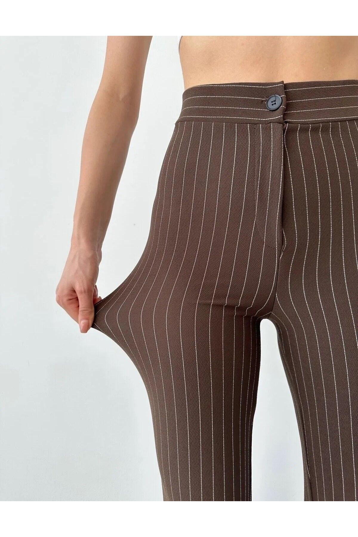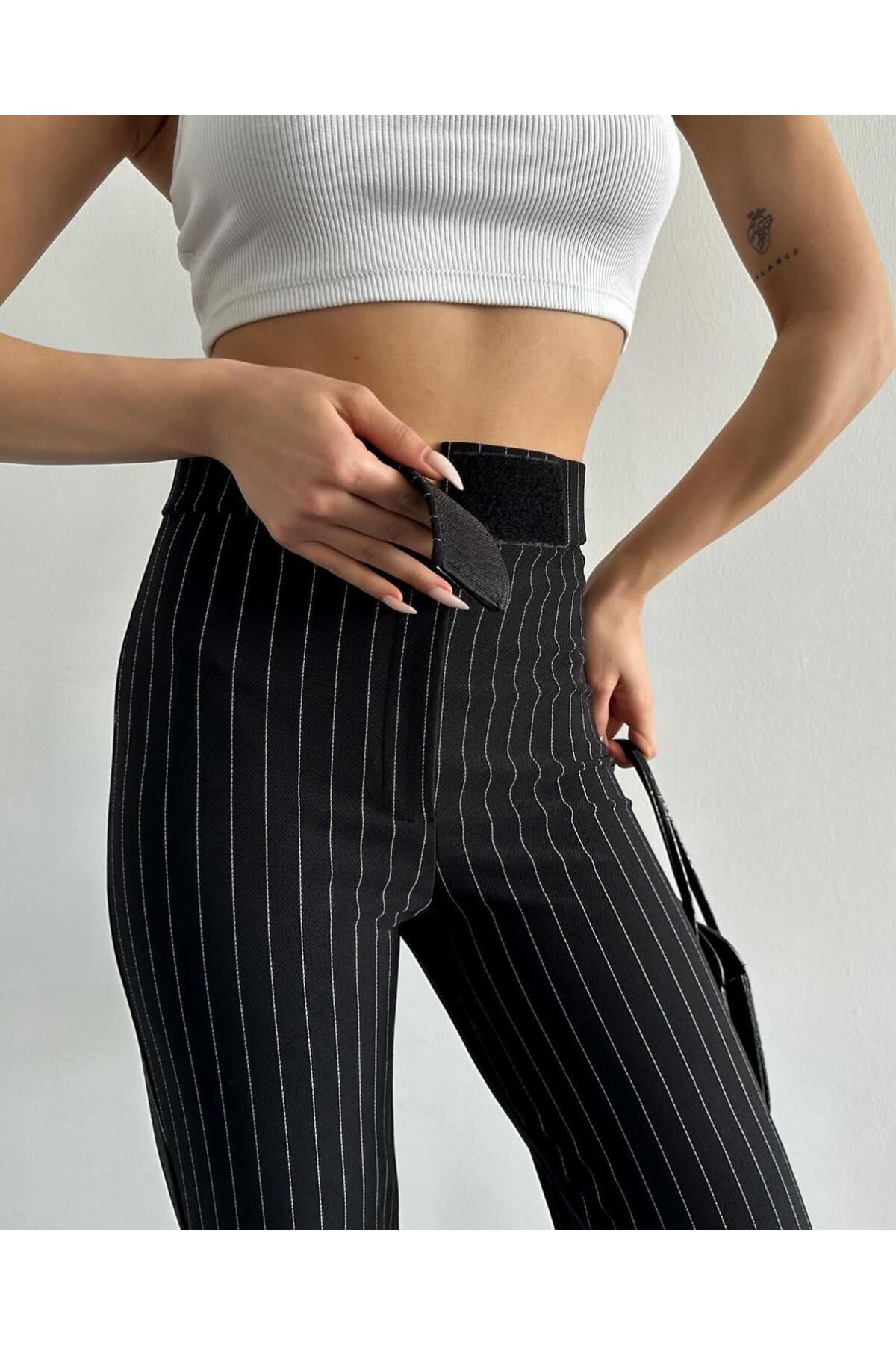 Krep Kumaş Likralı Palazzo Çizgili Pantolon Krep Kumaş Likralı Palazzo Çizgili Pantolon EB723566 38