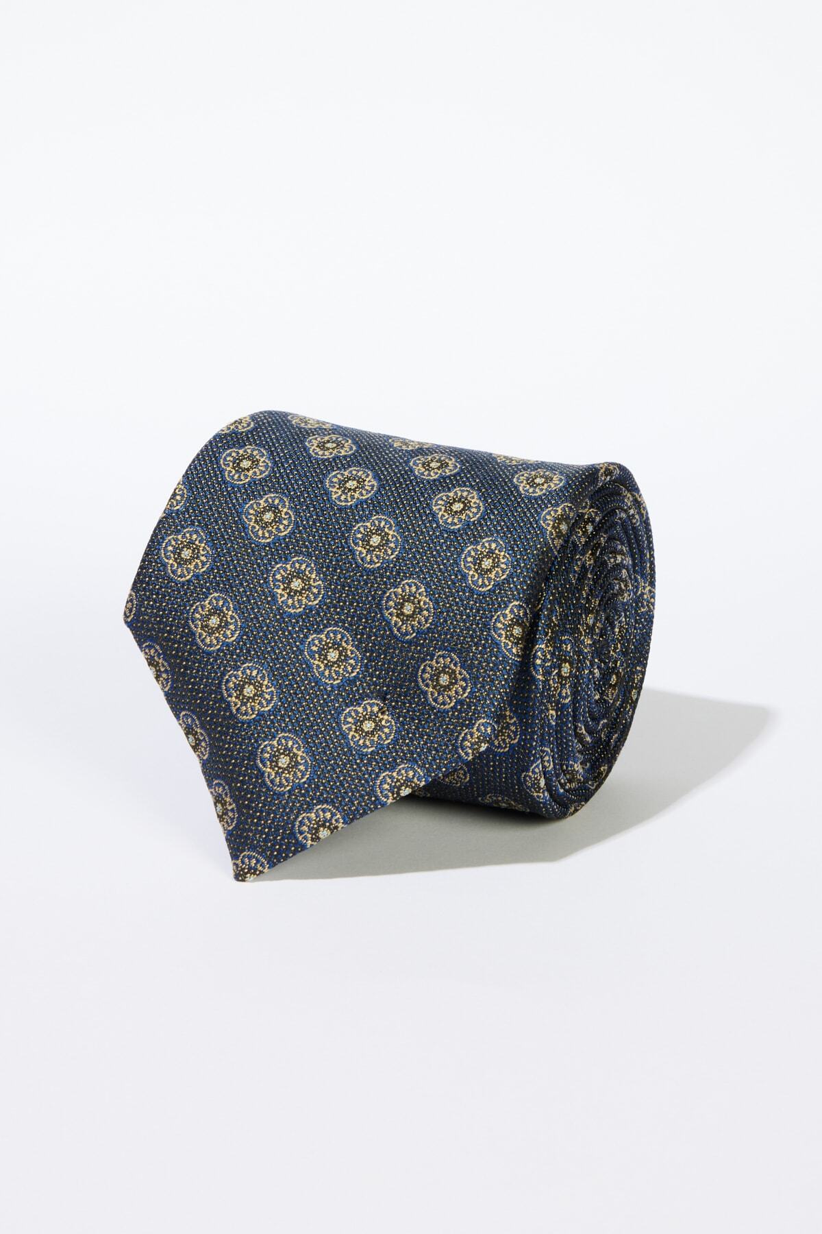 Erkek Mavi-Bej Desenli Klasik Kravat Erkek Mavi-Bej Desenli Klasik Kravat 4A2122100101 تک سایز