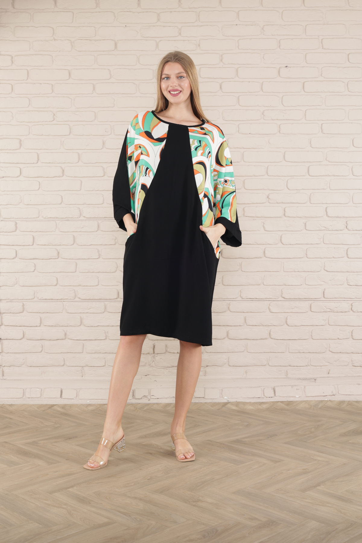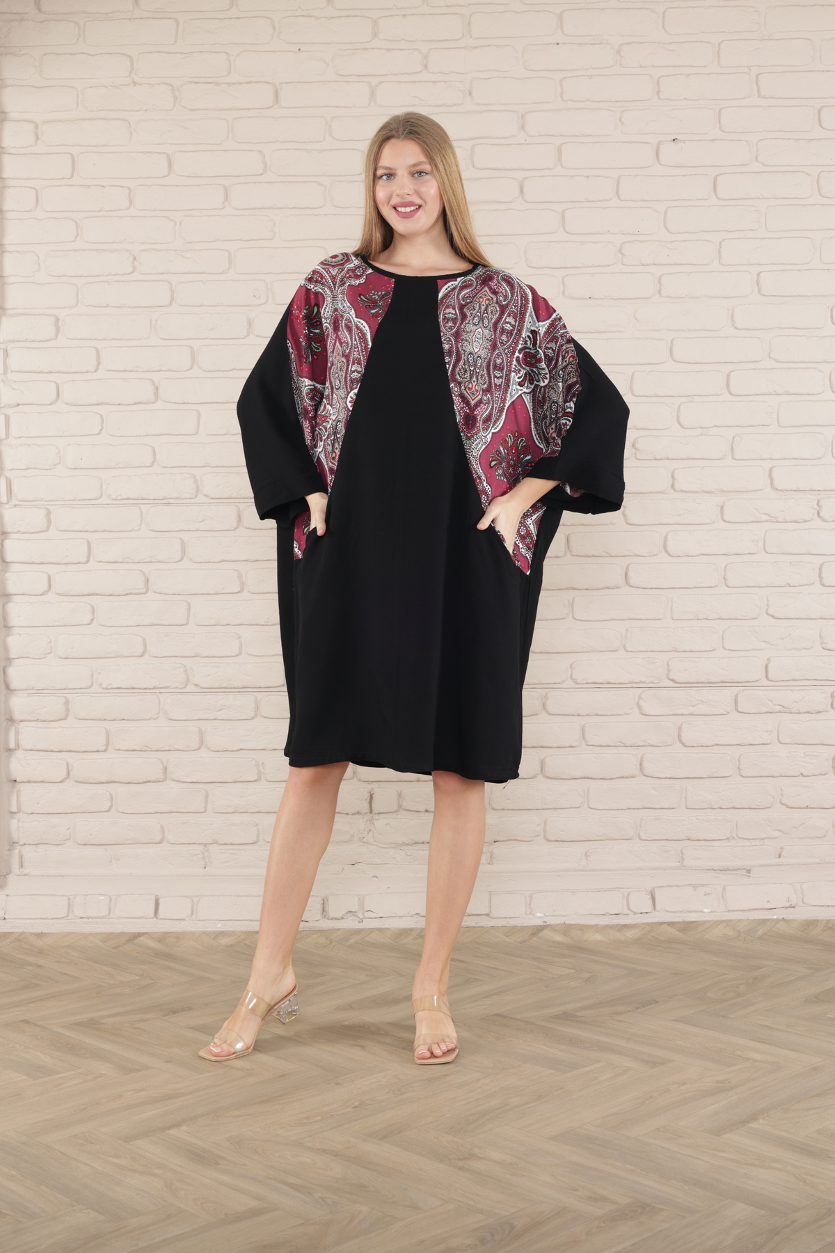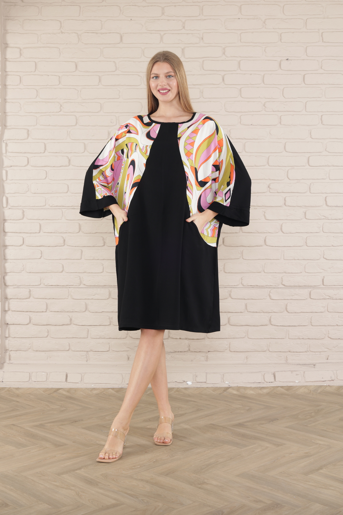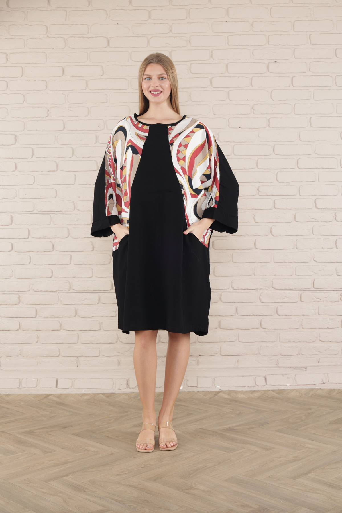 kadın kısa kol midi boy tunik elbise kadın kısa kol midi boy tunik elbise 519 5XL