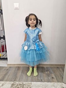 Kız Çocuk Pullu Tüllü Elbise Turkuaz Mavi Kız Çocuk Pullu Tüllü Elbise Turkuaz Mavi Md001 12 Yaş