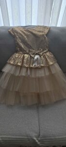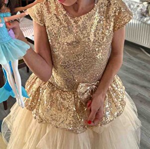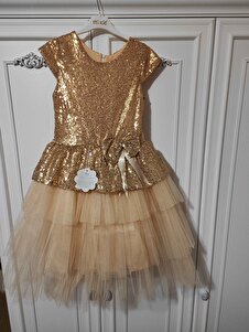 Kız Çocuk Pullu Tüllü Elbise Gold Kız Çocuk Pullu Tüllü Elbise Gold Md001 12 Yaş