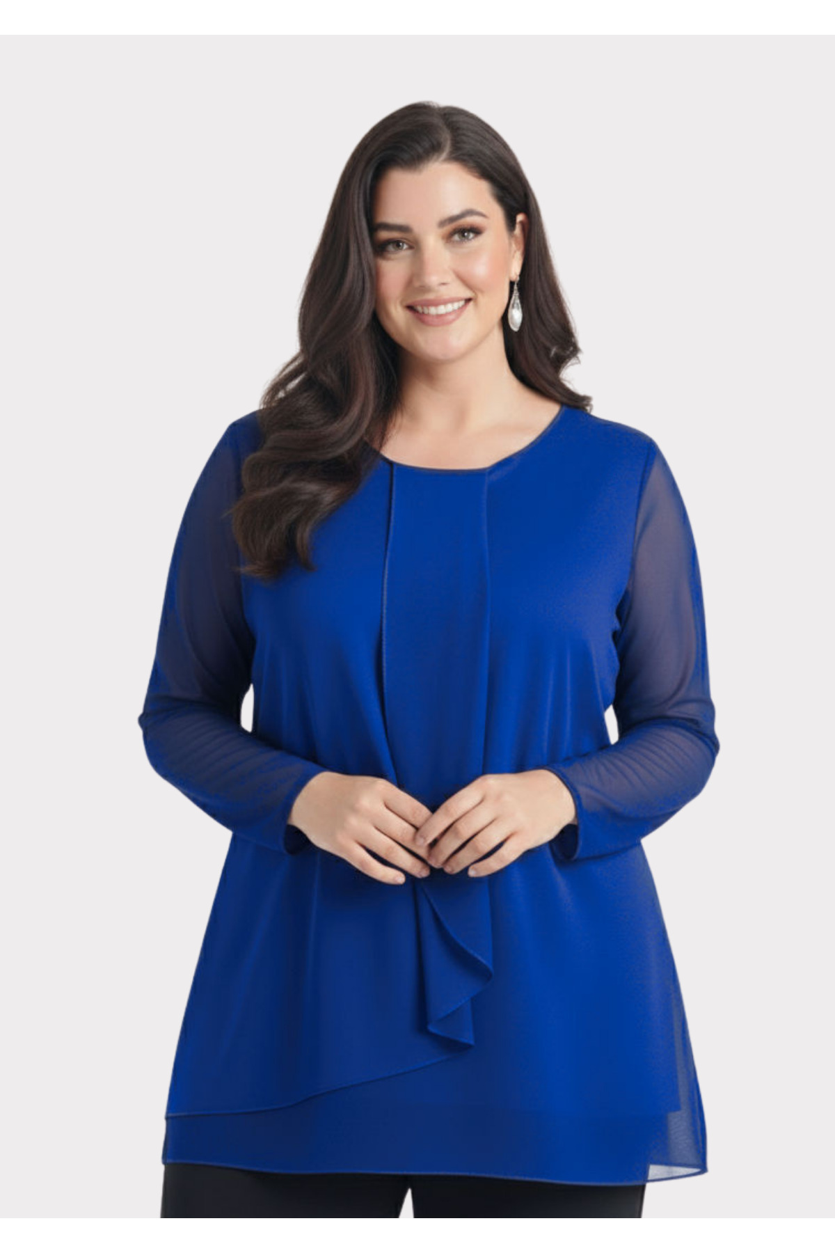 Büyük Beden Lacivert Renkli Şifon Bluz Büyük Beden Lacivert Renkli Şifon Bluz 470 52