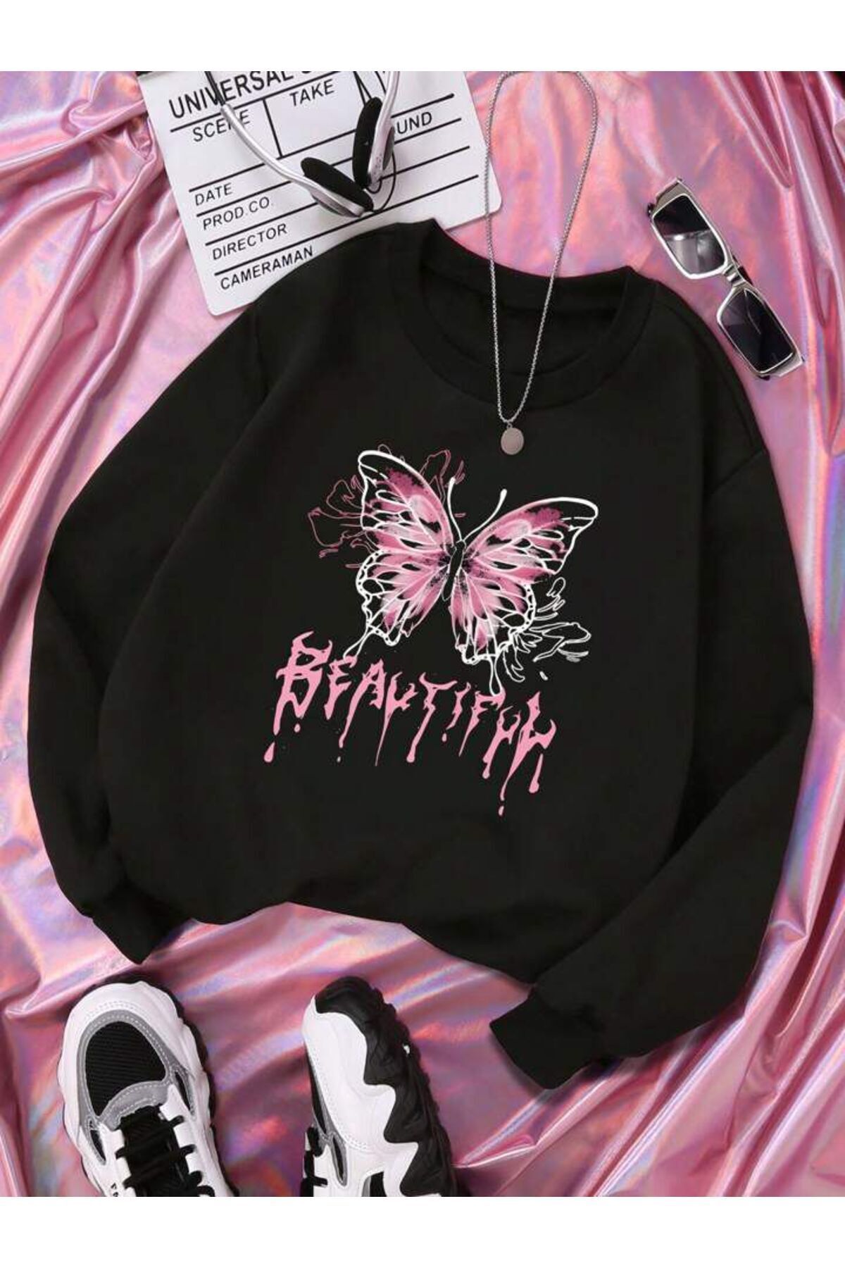 Çiçek Cep Tasarım Kalın Kışlık Sweatshirt - Siyah Baskılı Oversize Şardonlu Bisiklet Yaka Çiçek Cep Tasarım Kalın Kışlık Sweatshirt - Siyah Baskılı Oversize Şardonlu Bisiklet Yaka CCKCPBSKLT-CA 9-10 Yaş