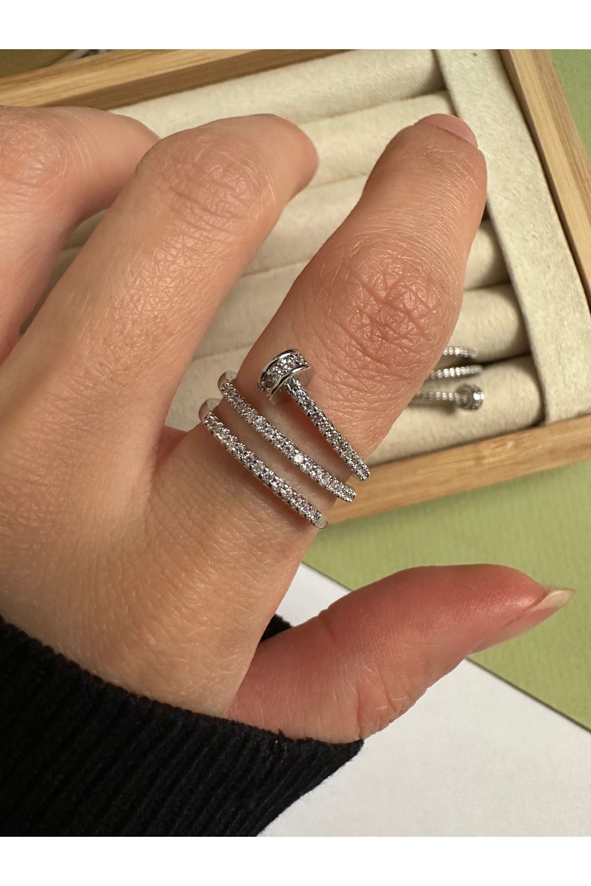 Gold Renk Üç Sıra Zirkon Taşlı Çivi Yüzük Gold Renk Üç Sıra Zirkon Taşlı Çivi Yüzük RB765 تک سایز