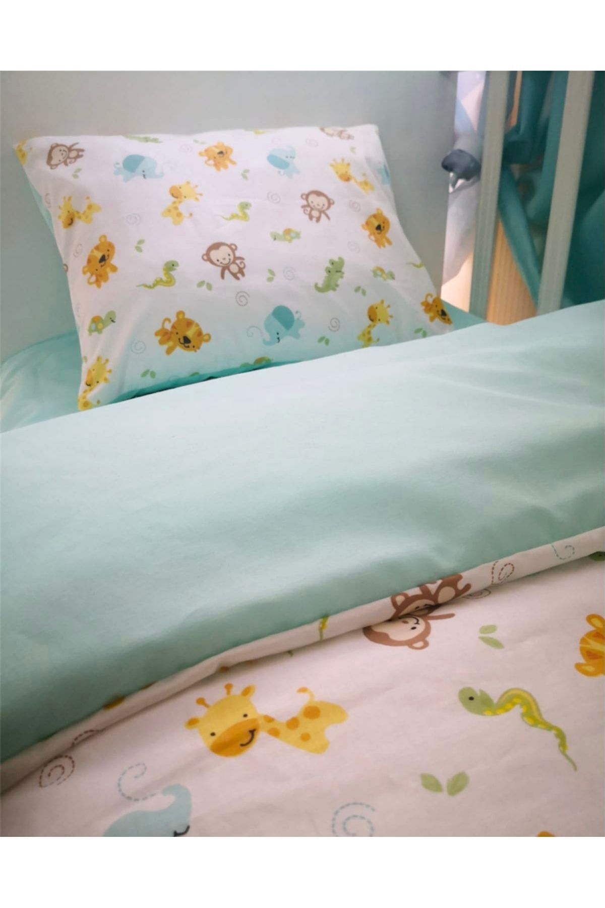 Çocuk Nevresim Takımı 100x200 Montessori Yatak İçin Sevimli Hayvanlar Mint (yorgansız) Çocuk Nevresim Takımı 100x200 Montessori Yatak İçin Sevimli Hayvanlar Mint (yorgansız) 100200 تک سایز