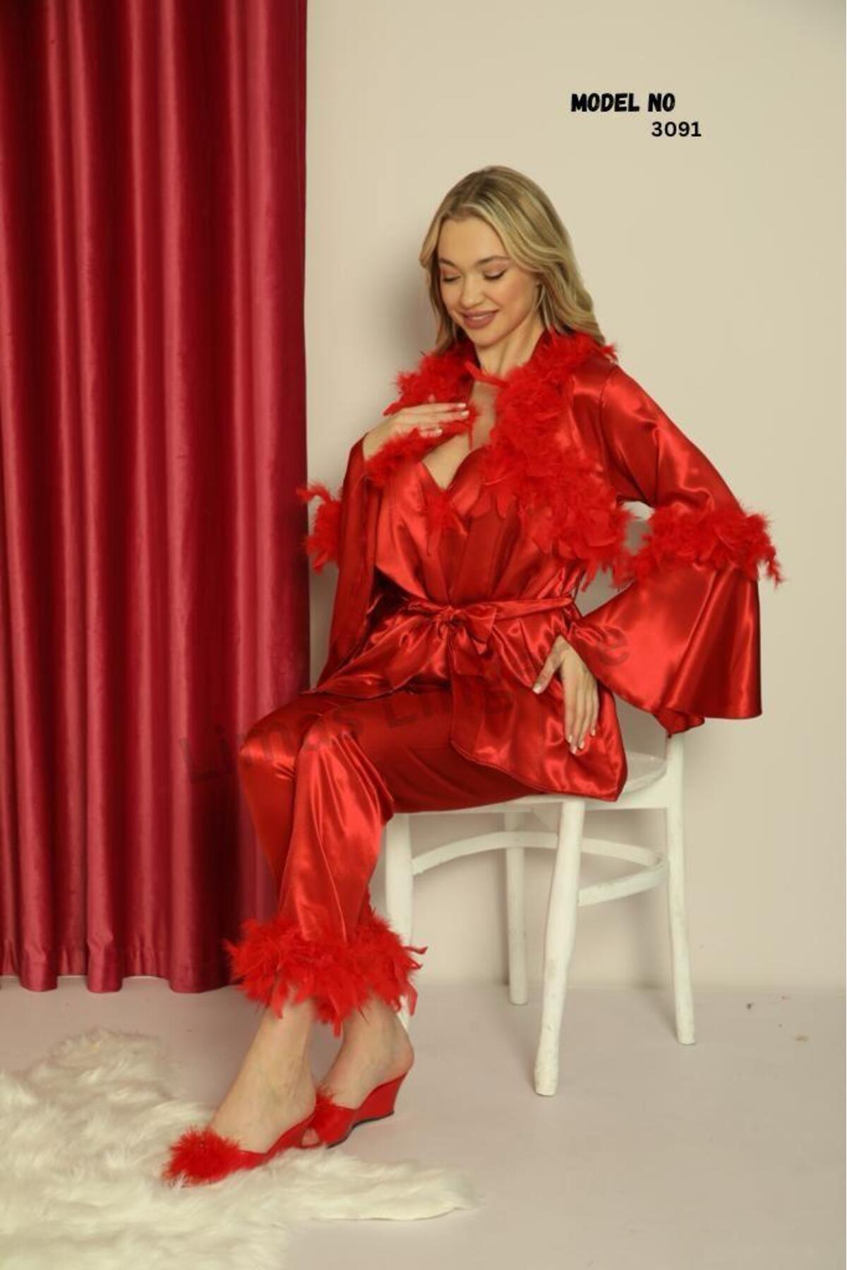 tüylü pijama takımı 4 parça tüylü pijama takımı 4 parça 3091 S/M