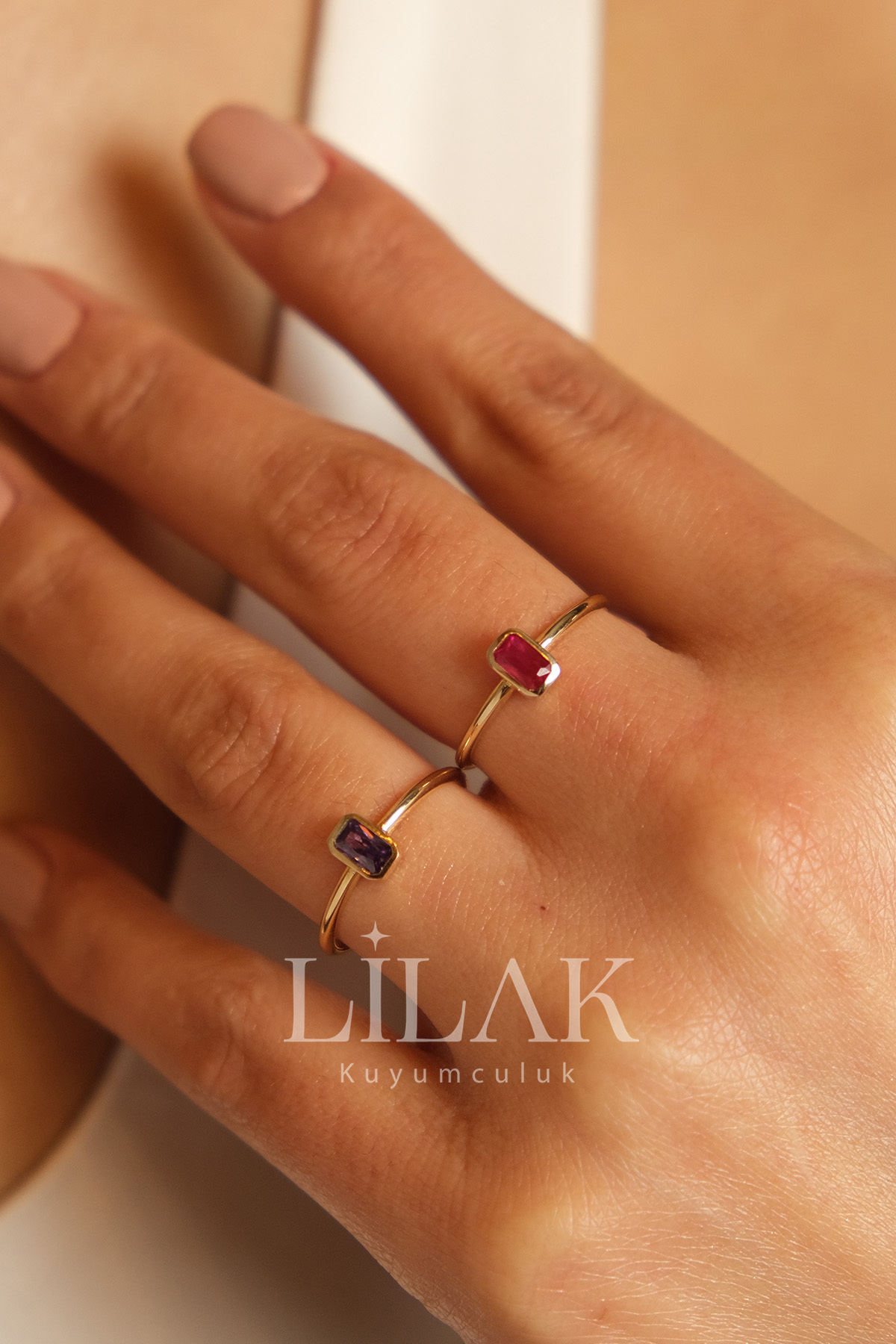 Mor Taşlı Tasarım Altın Yüzük Mor Taşlı Tasarım Altın Yüzük YUZ0020073 تک سایز