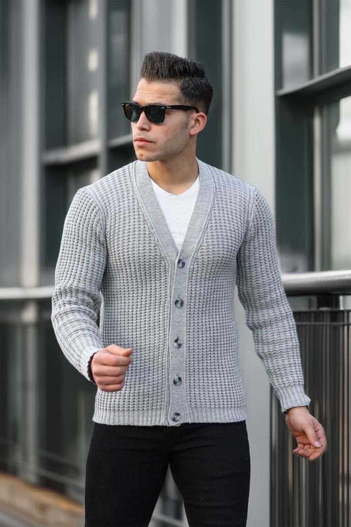 Nopenli Fitil Örgü Düğmeli Hırka - Açık Gri Nopenli Fitil Örgü Düğmeli Hırka - Açık Gri DH10005 L/XL