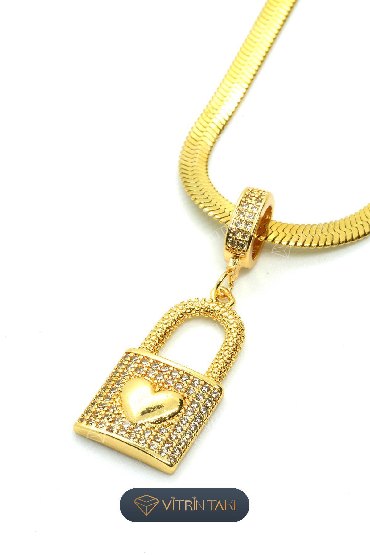 kadın kilit detaylı çelik kolye kadın kilit detaylı çelik kolye ars-8545 50 cm