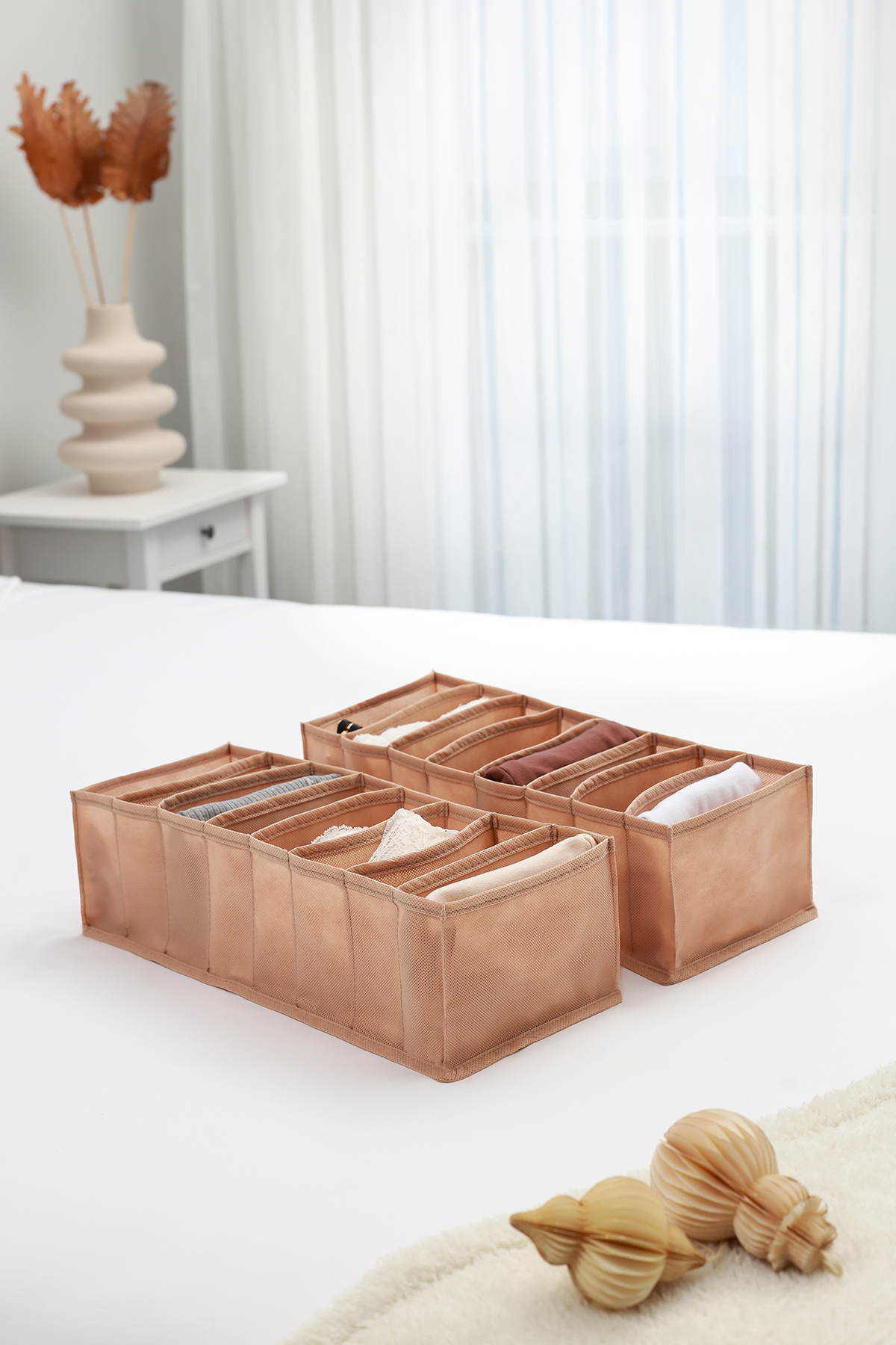 2'li Set Bej 10 Bölmeli Dolap Çekmece İçi Akordiyon Tipi Katlanır Çamaşır Düzenleyici Organizer 2'li Set Bej 10 Bölmeli Dolap Çekmece İçi Akordiyon Tipi Katlanır Çamaşır Düzenleyici Organizer 2OR10 تک سایز