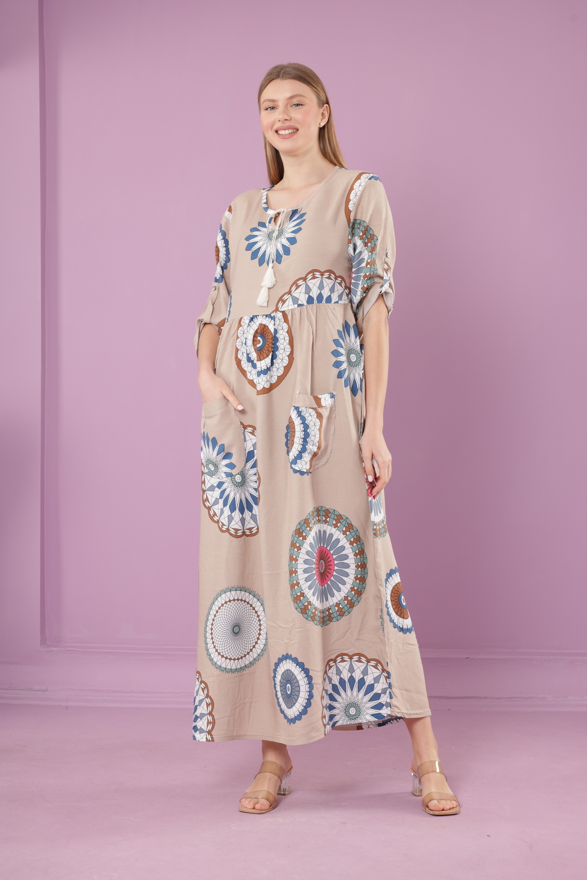 Kadın dokuma viskon cepli damla yaka uzun elbise Kadın dokuma viskon cepli damla yaka uzun elbise 544 3XL