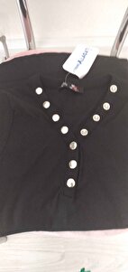 Kadın Siyah V Yaka Çıt Çıt Çıt Kapamalı Bluz ALC-X11576 Kadın Siyah V Yaka Çıt Çıt Çıt Kapamalı Bluz ALC-X11576 Standart