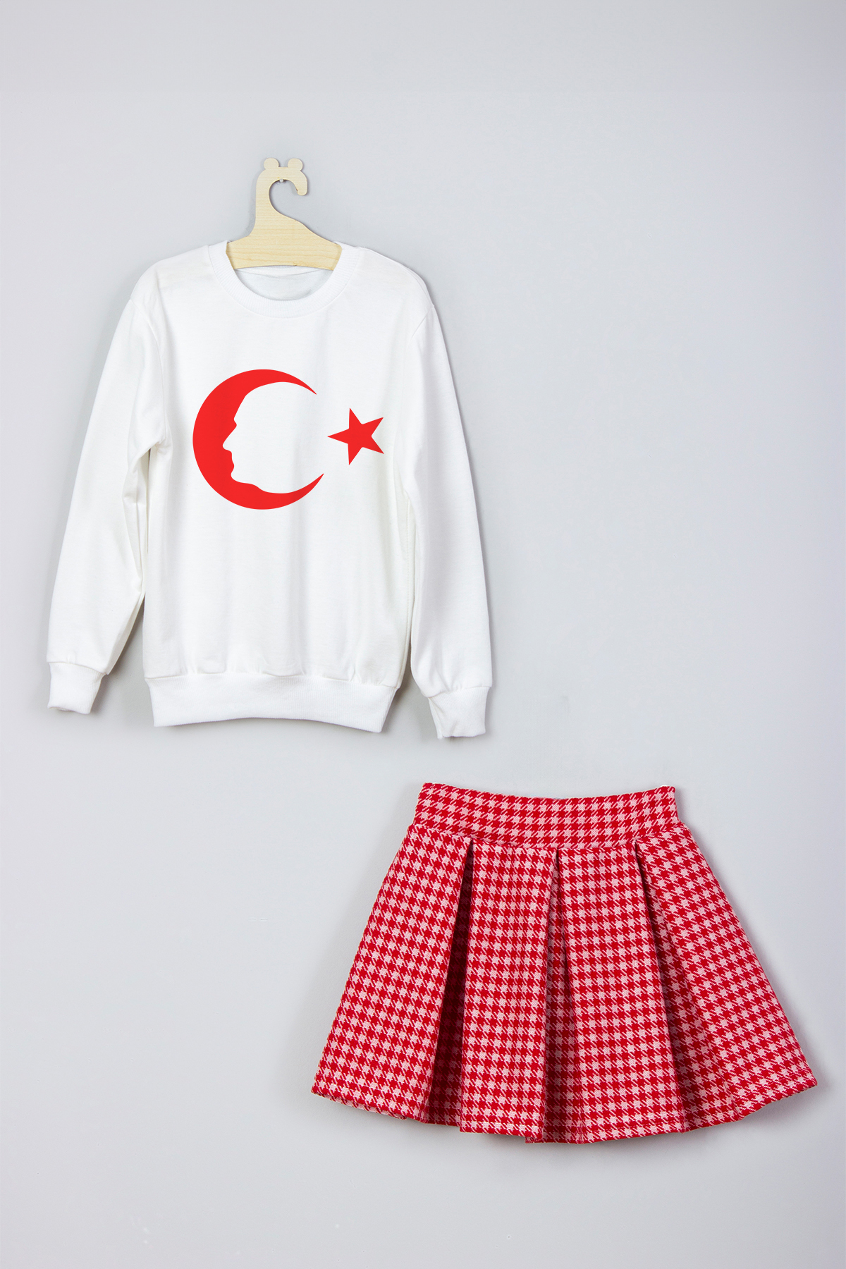 Ekose Kare Etekli Tarz Organik Atatürk Baskılı Sweat Etek Takım Ekose Kare Etekli Tarz Organik Atatürk Baskılı Sweat Etek Takım ADA10053-51 9-10 Yaş