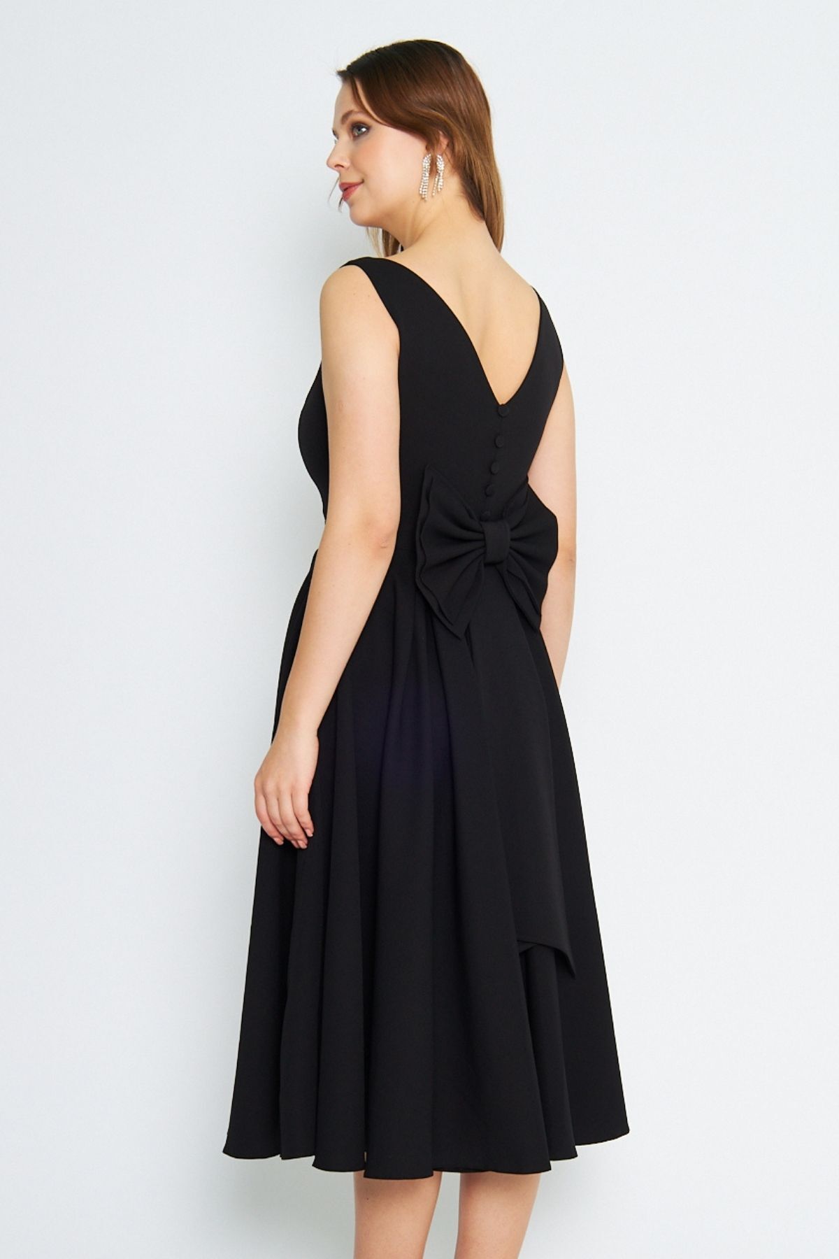 Kadın Sırtı Fiyonklu Süs Düğmeli V Yaka Maxi Kloş Siyah Abiye Elbise Kadın Sırtı Fiyonklu Süs Düğmeli V Yaka Maxi Kloş Siyah Abiye Elbise 330MAX 54