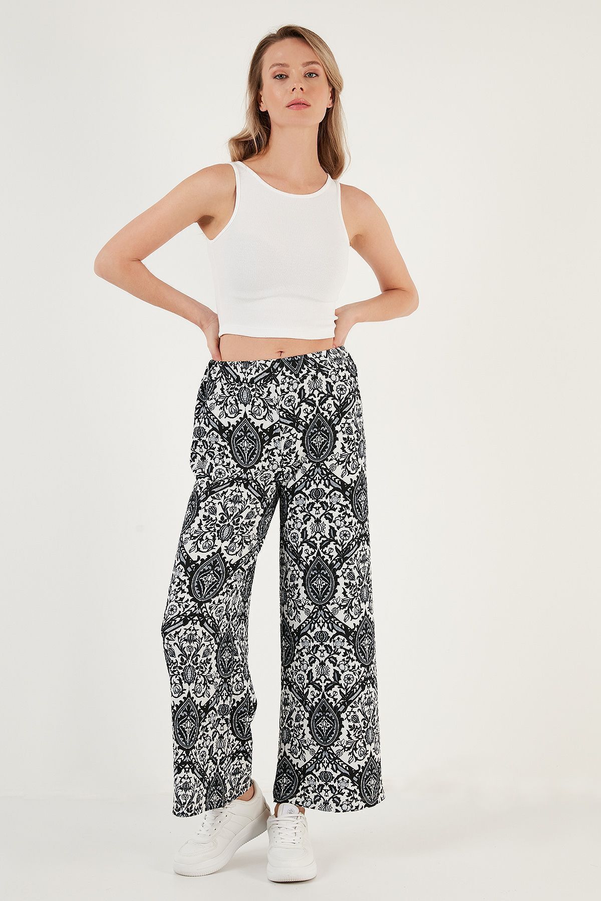 Desenli Beli Lastikli Bol Paça Pantolon PANTOLON 5865603 Desenli Beli Lastikli Bol Paça Pantolon PANTOLON 5865603 XL