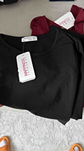 Kadın Siyah Bisiklet Yaka Basic Crop Örme Bluz OW00034 Kadın Siyah Bisiklet Yaka Basic Crop Örme Bluz OW00034 42