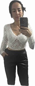 Kadın Beyaz Dantelli Şık Örme Crop Bluz RG00005 Kadın Beyaz Dantelli Şık Örme Crop Bluz RG00005 40