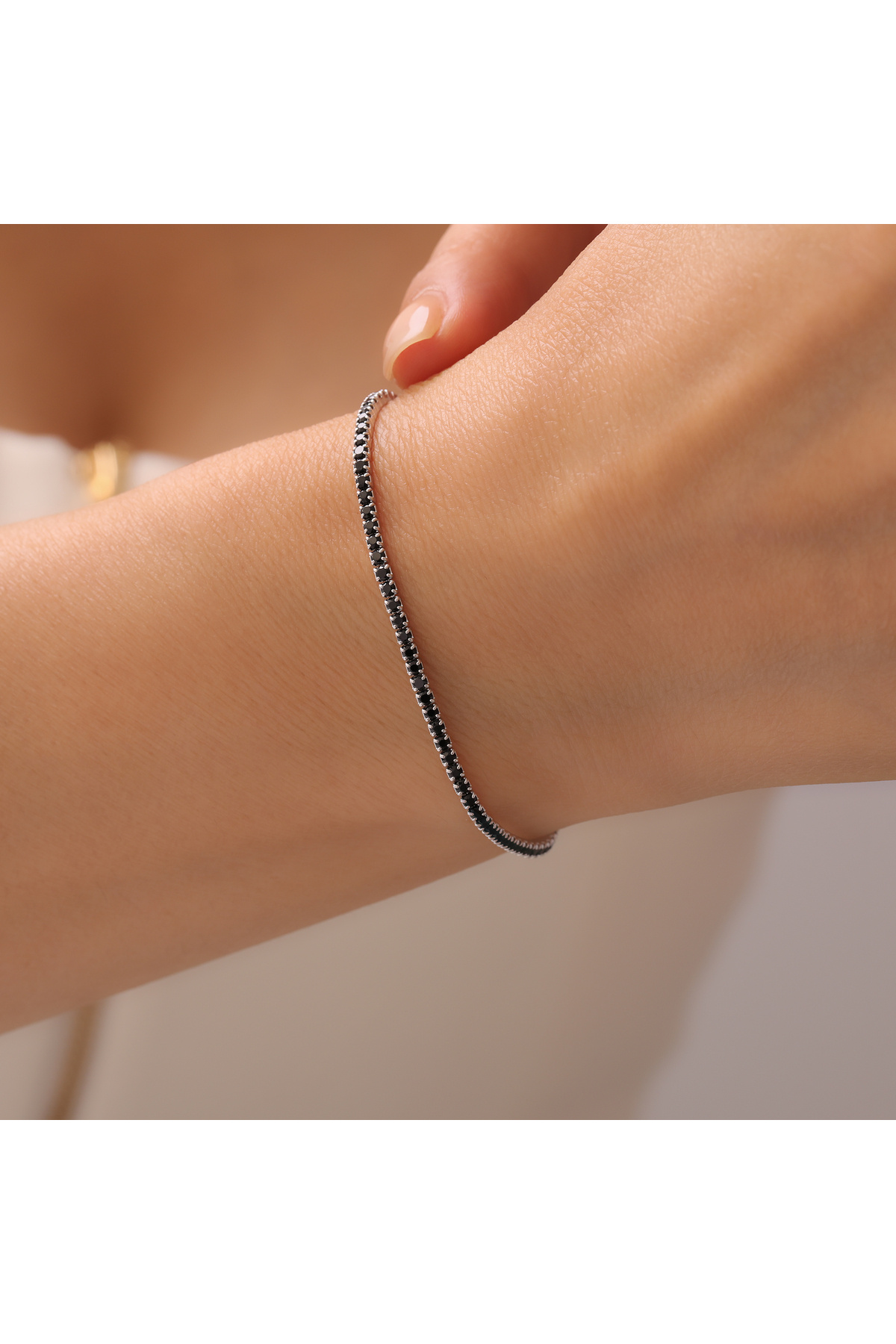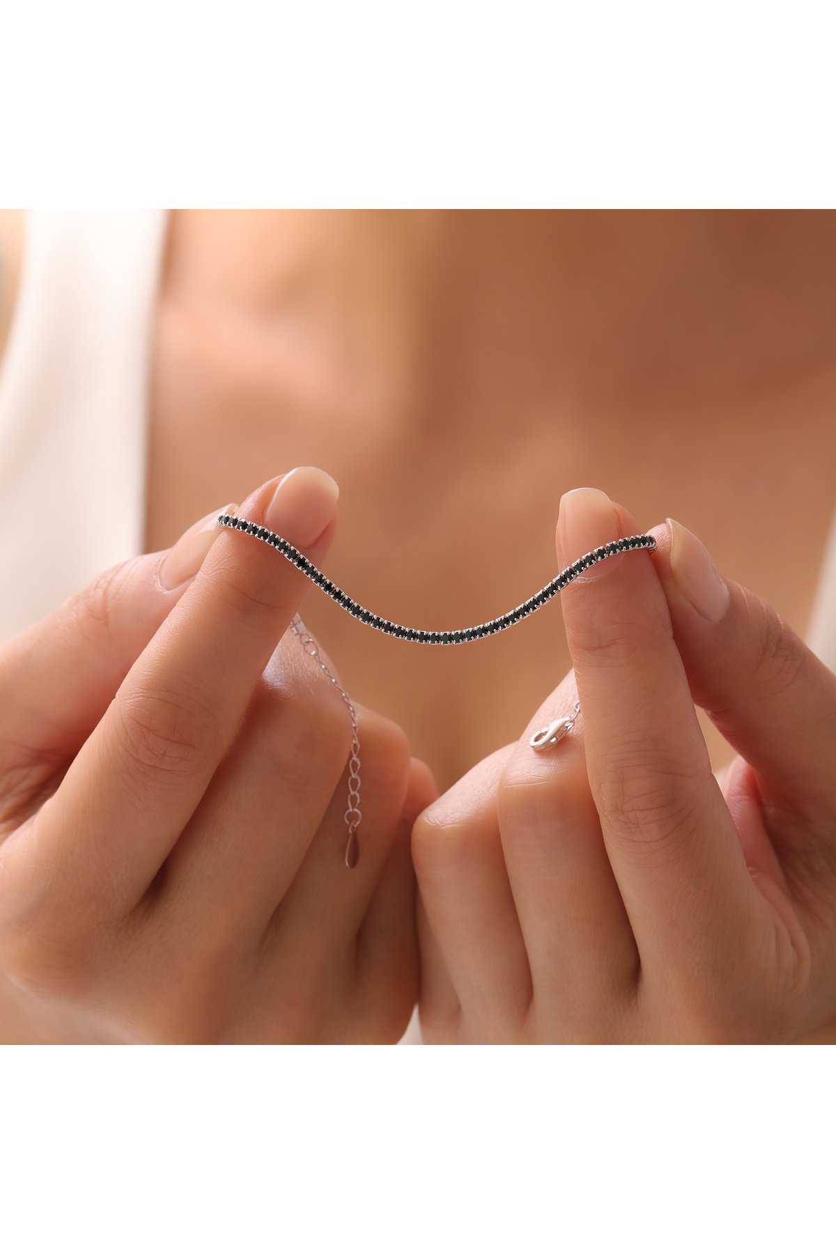 925 Ayar Gümüş 1,50 mm Siyah Zirkonyum Taşlı Suyolu Bileklik 925 Ayar Gümüş 1,50 mm Siyah Zirkonyum Taşlı Suyolu Bileklik SY-002 19 cm