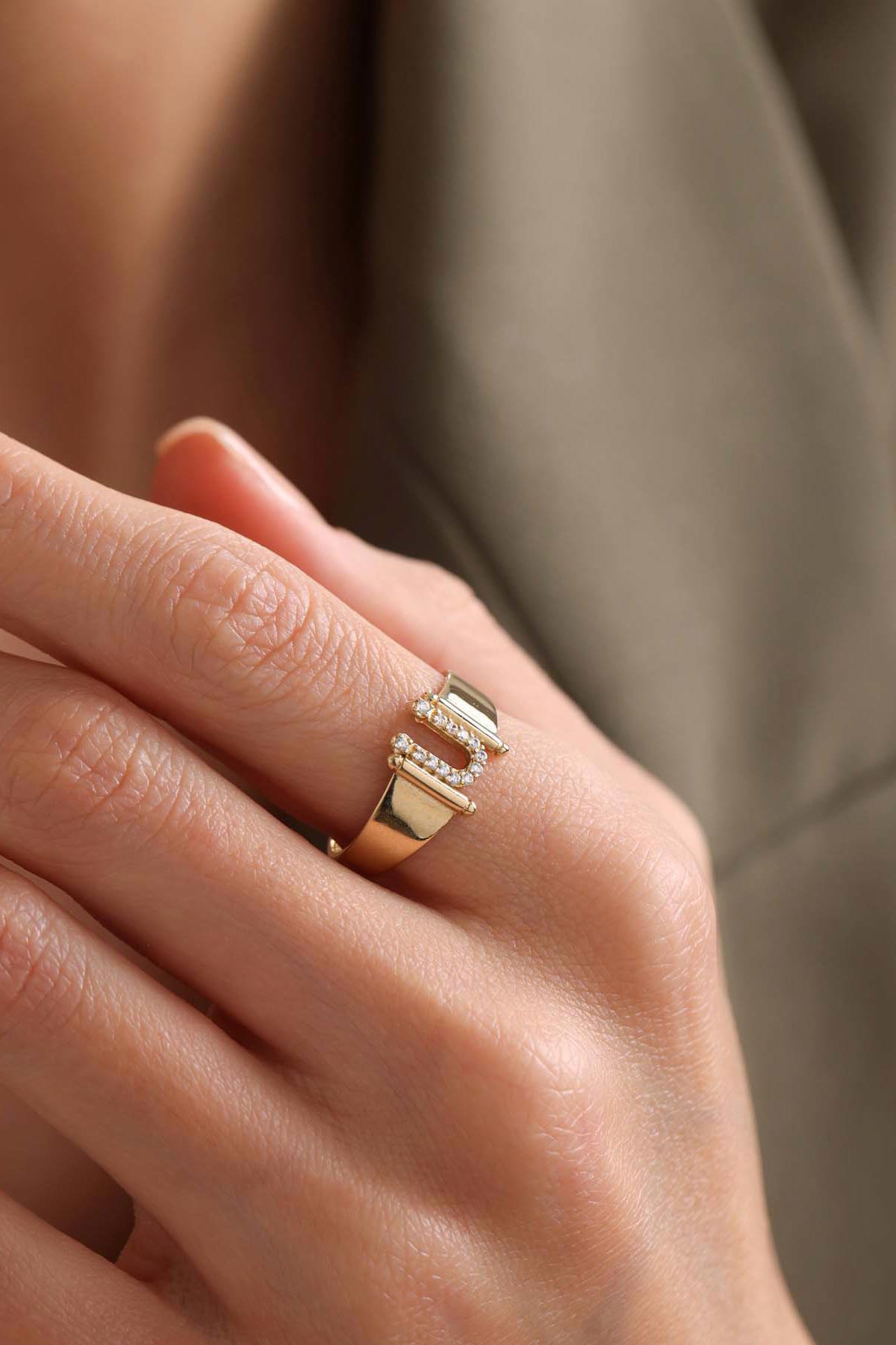14 Ayar Altın Küçük U Harfli Taşlı Yüzük 14 Ayar Altın Küçük U Harfli Taşlı Yüzük KCKUHRFL1TSL1YZK 16