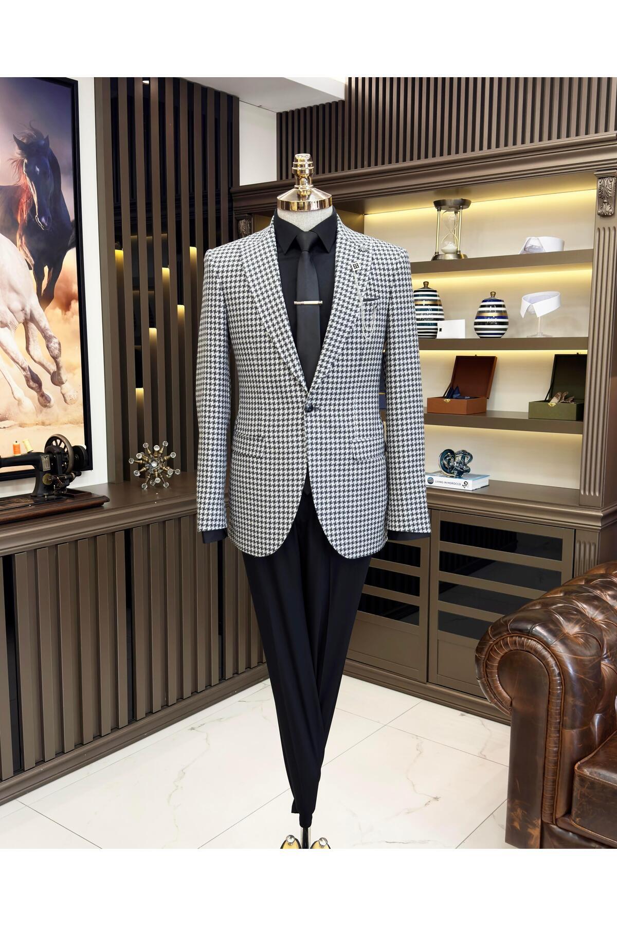 İtalyan stil slim fit kazayağı desen erkek ceket siyah T11500 İtalyan stil slim fit kazayağı desen erkek ceket siyah T11500 58
