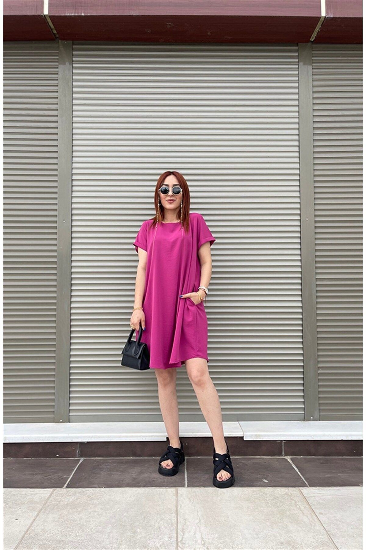 Kadın Fuşya Gömlek Yaka, Uzun Kol, Asimetrik Kesim, Salaş, Midi Tunik Elbise Kadın Fuşya Gömlek Yaka, Uzun Kol, Asimetrik Kesim, Salaş, Midi Tunik Elbise NYK4912 42