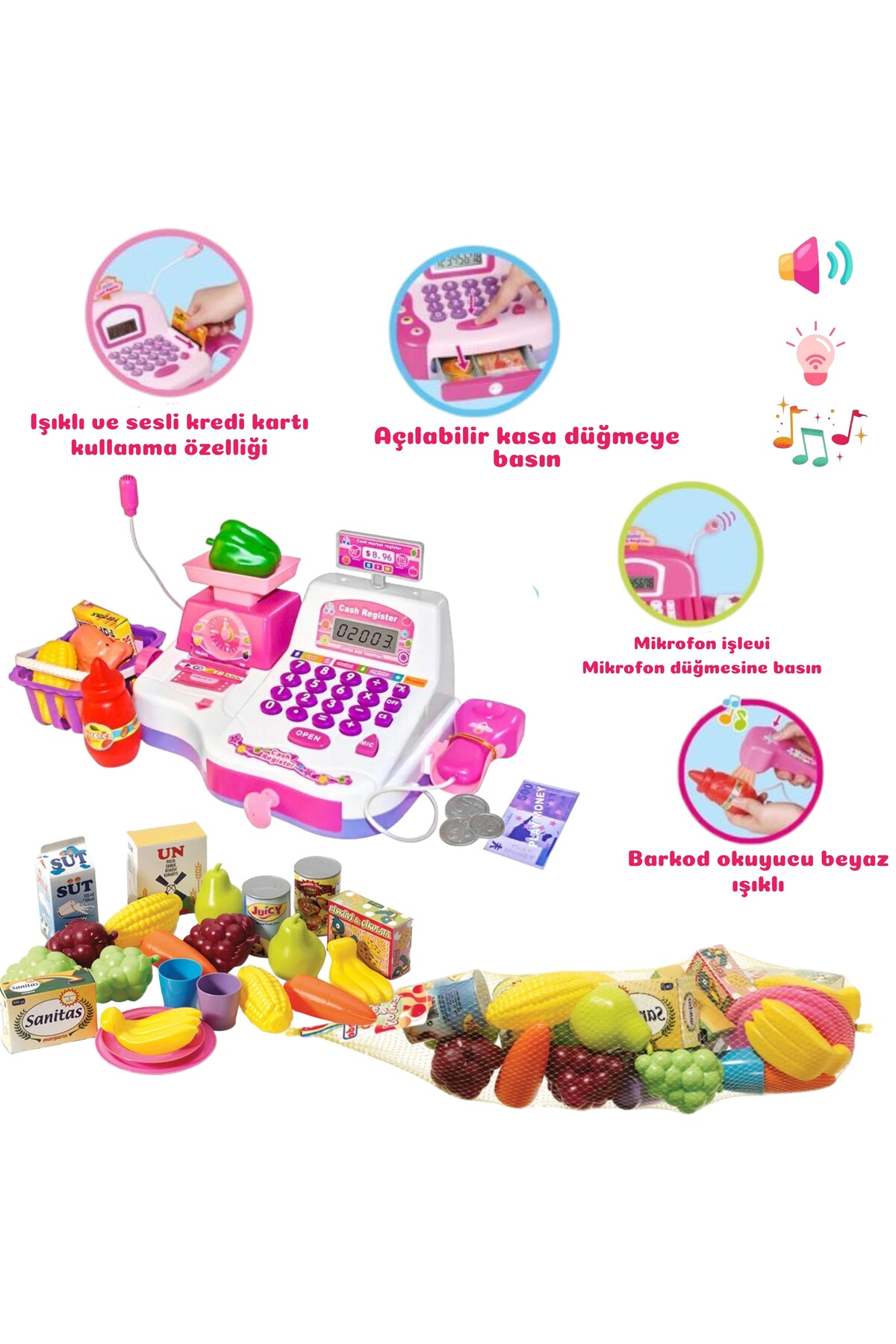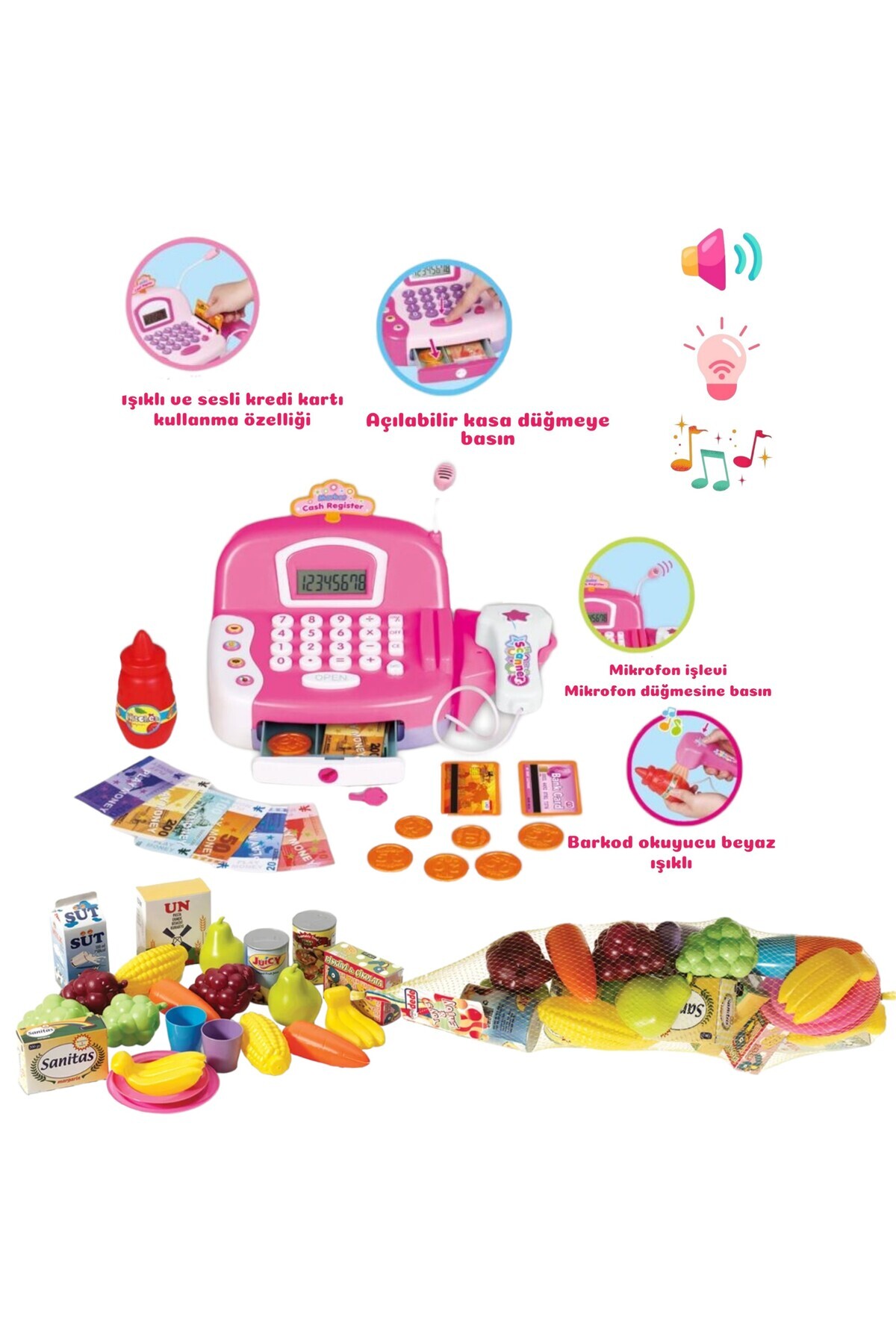 Sesli ve Işıklı Barkod Okuyuculu Büyük Boy Mikrofonlu Terazili Meyveli Yazar Kasa 20 Parça Sesli ve Işıklı Barkod Okuyuculu Büyük Boy Mikrofonlu Terazili Meyveli Yazar Kasa 20 Parça 6602 تک سایز