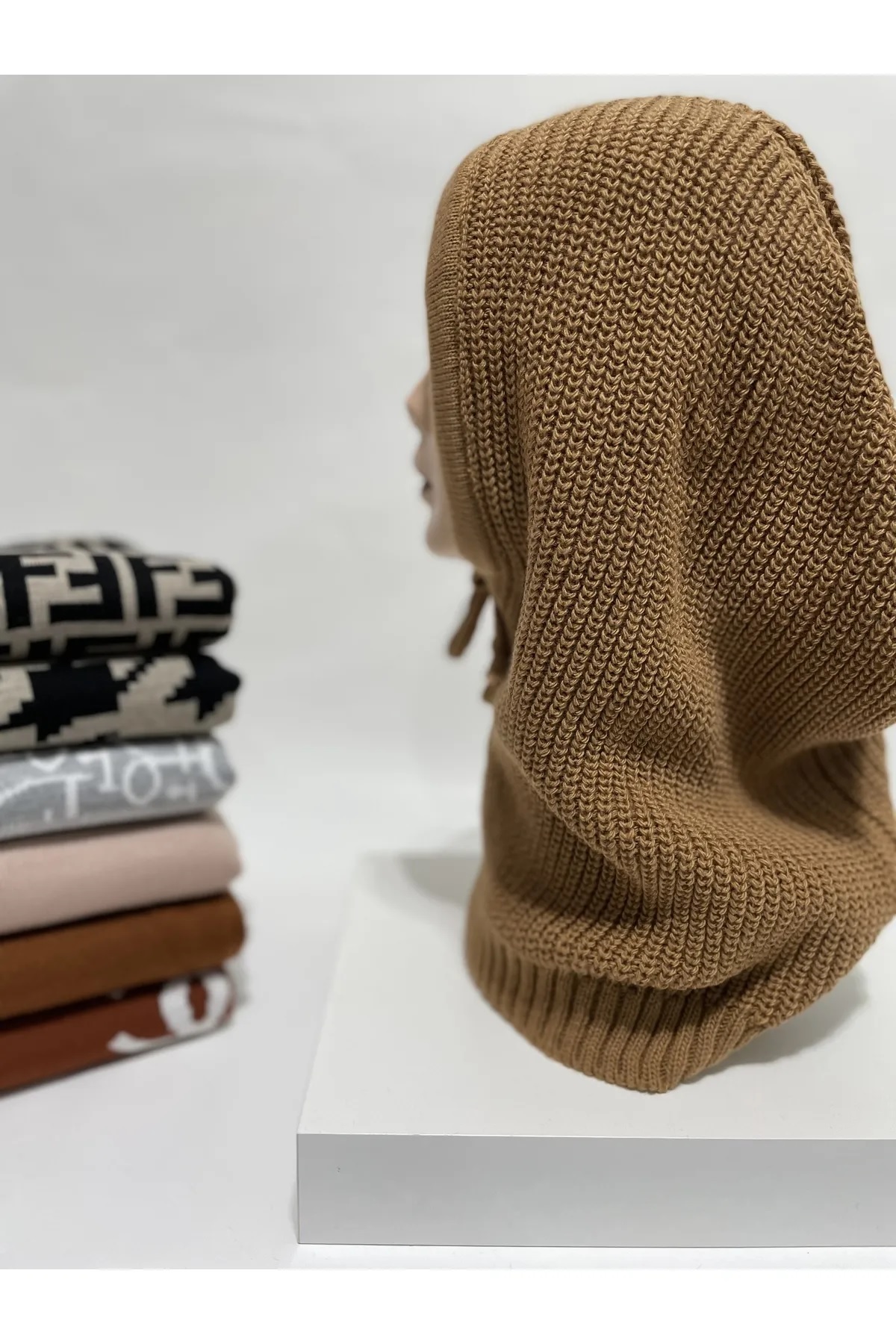 Triko Örgü Bere Başlık | Bağcıklı Kapşonlu Bere-TAŞ RENGİ Triko Örgü Bere Başlık | Bağcıklı Kapşonlu Bere-TAŞ RENGİ ALLUR105-01A Standart