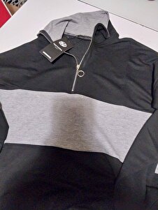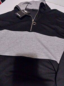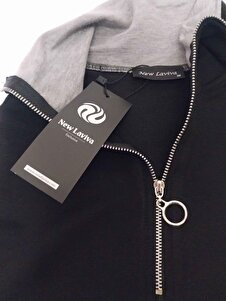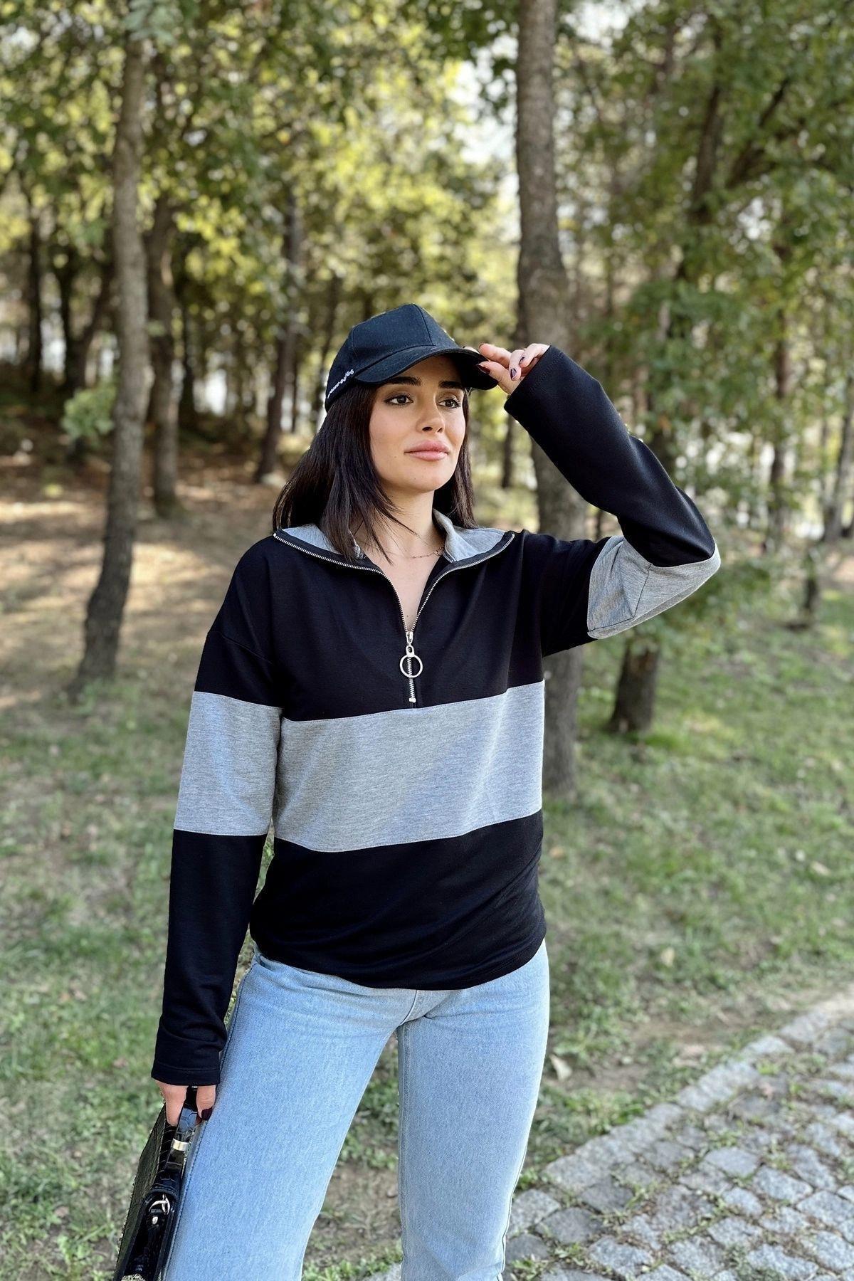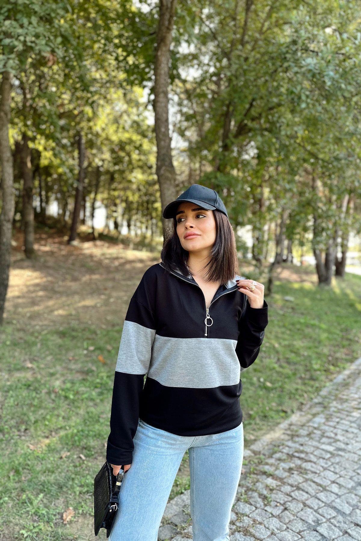 Kadın Siyah Uzun Kol, Dik Yaka, Fermuarlı, Double Color Block Basic Sweatshirt Bluz Kadın Siyah Uzun Kol, Dik Yaka, Fermuarlı, Double Color Block Basic Sweatshirt Bluz NY3471 42