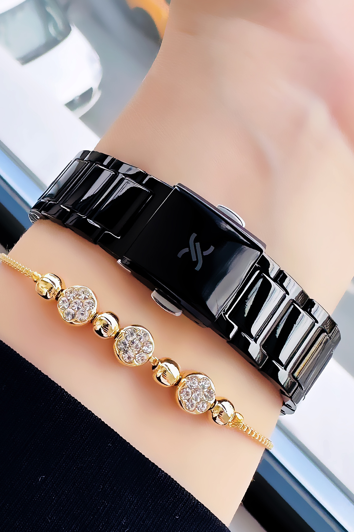 Orijinal Yeni Sezon Kesme Cam Kadın Kol Saati Siyah Çelik Kordon Hediye Bileklik DKBH3940 Orijinal Yeni Sezon Kesme Cam Kadın Kol Saati Siyah Çelik Kordon Hediye Bileklik DKBH3940 تک سایز