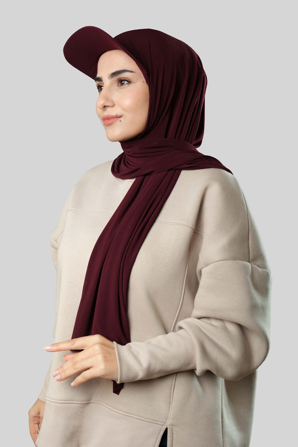 Bordo Pratik Hazır Geçmeli Şapkalı Tesettür Şal Sandy Düz 3008_16 Bordo Pratik Hazır Geçmeli Şapkalı Tesettür Şal Sandy Düz 3008_16 HB3008 تک سایز