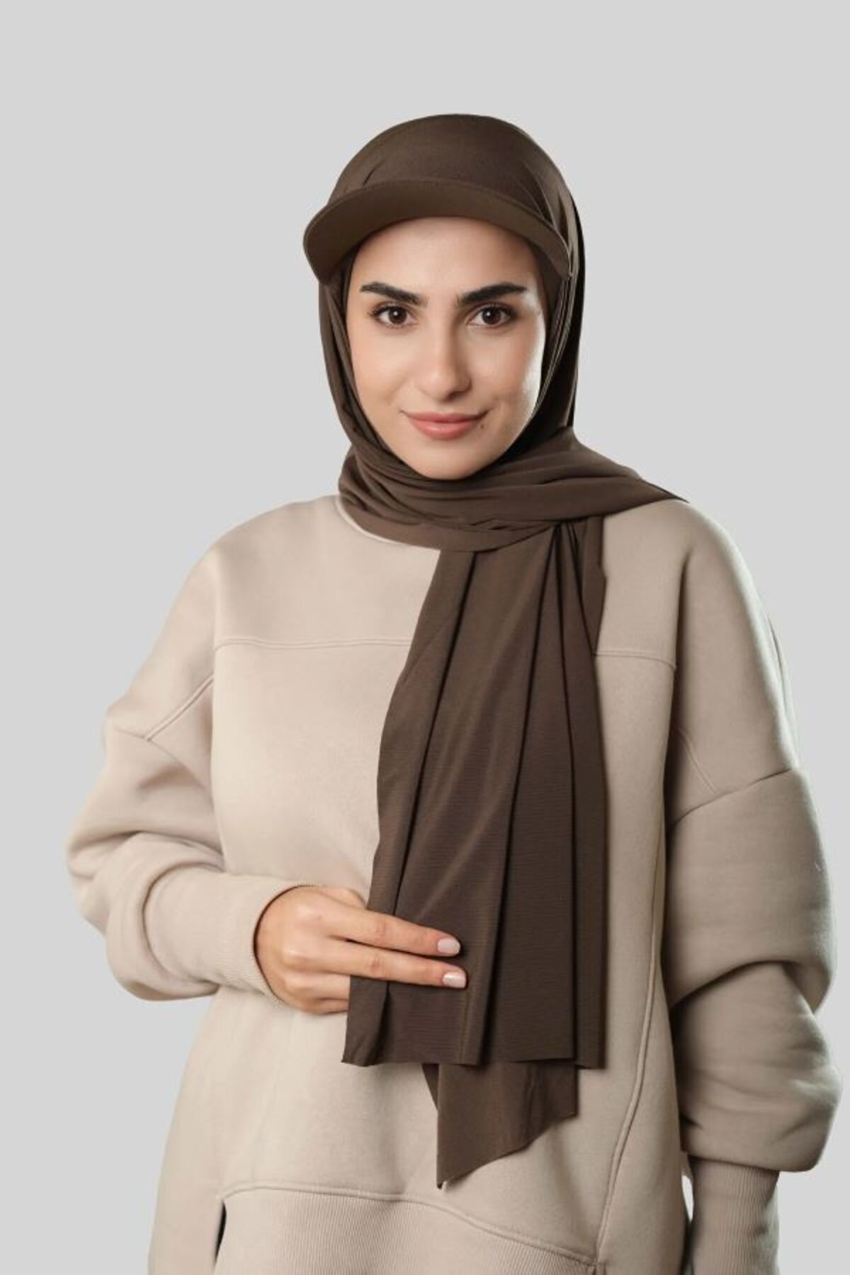 Koyu Vizon Pratik Hazır Geçmeli Şapkalı Tesettür Şal Sandy Düz 3008_38 Koyu Vizon Pratik Hazır Geçmeli Şapkalı Tesettür Şal Sandy Düz 3008_38 HB3008 تک سایز