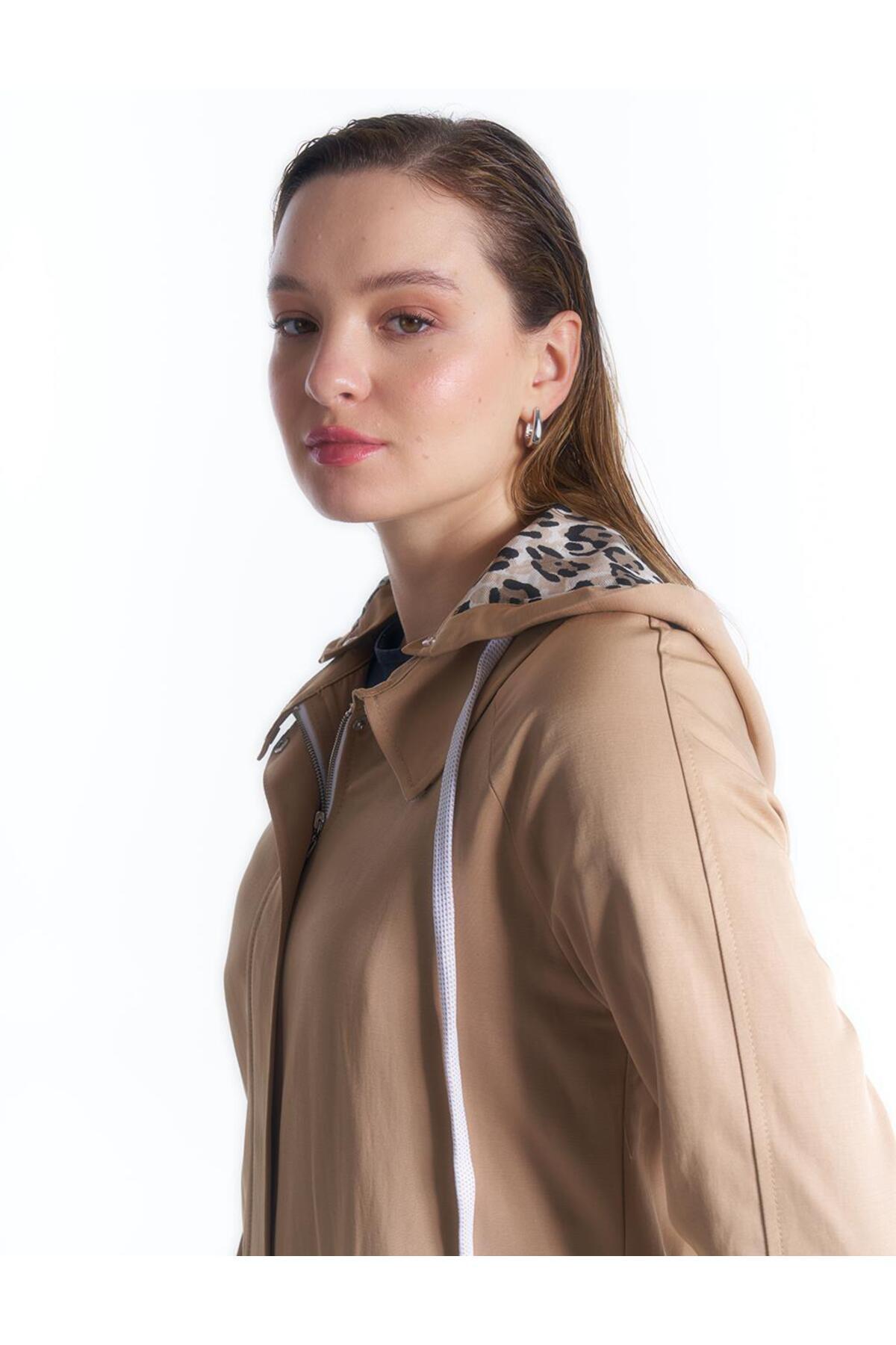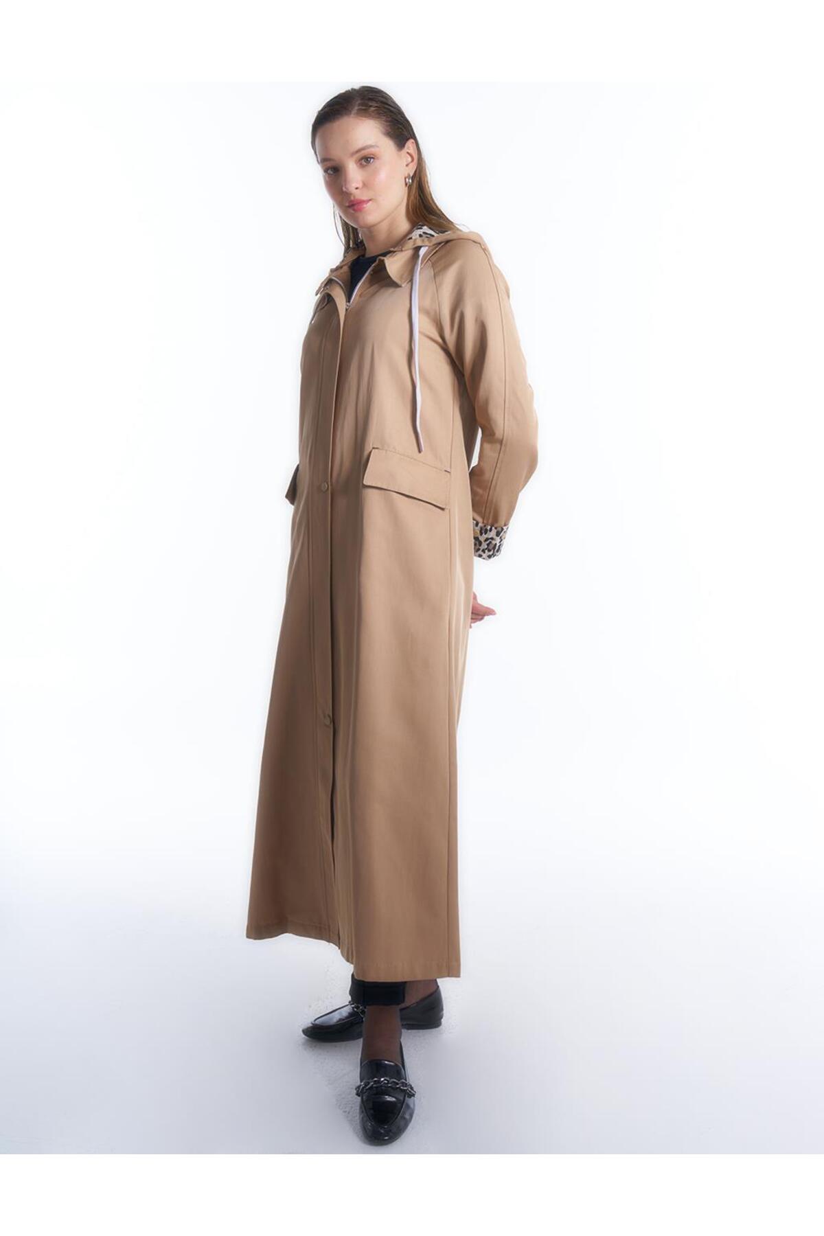 Patı Gizli Fermuar ve Çıt Çıtlı Pardesü Bej Patı Gizli Fermuar ve Çıt Çıtlı Pardesü Bej KA-B24-15003 42