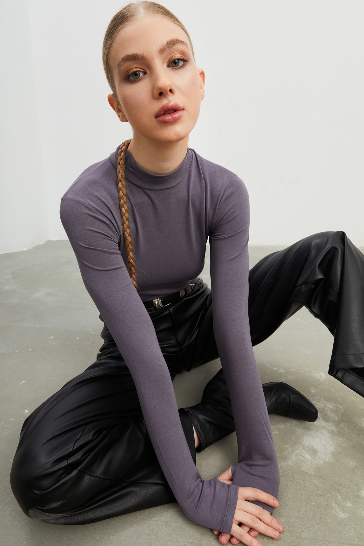 Kadın Açık Eflatun Parmak Detaylı Body Kadın Açık Eflatun Parmak Detaylı Body LDM-9001 2XL