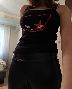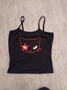 Siyah Red Eye Cat Face Askılı Crop Siyah Red Eye Cat Face Askılı Crop KHFT412 L