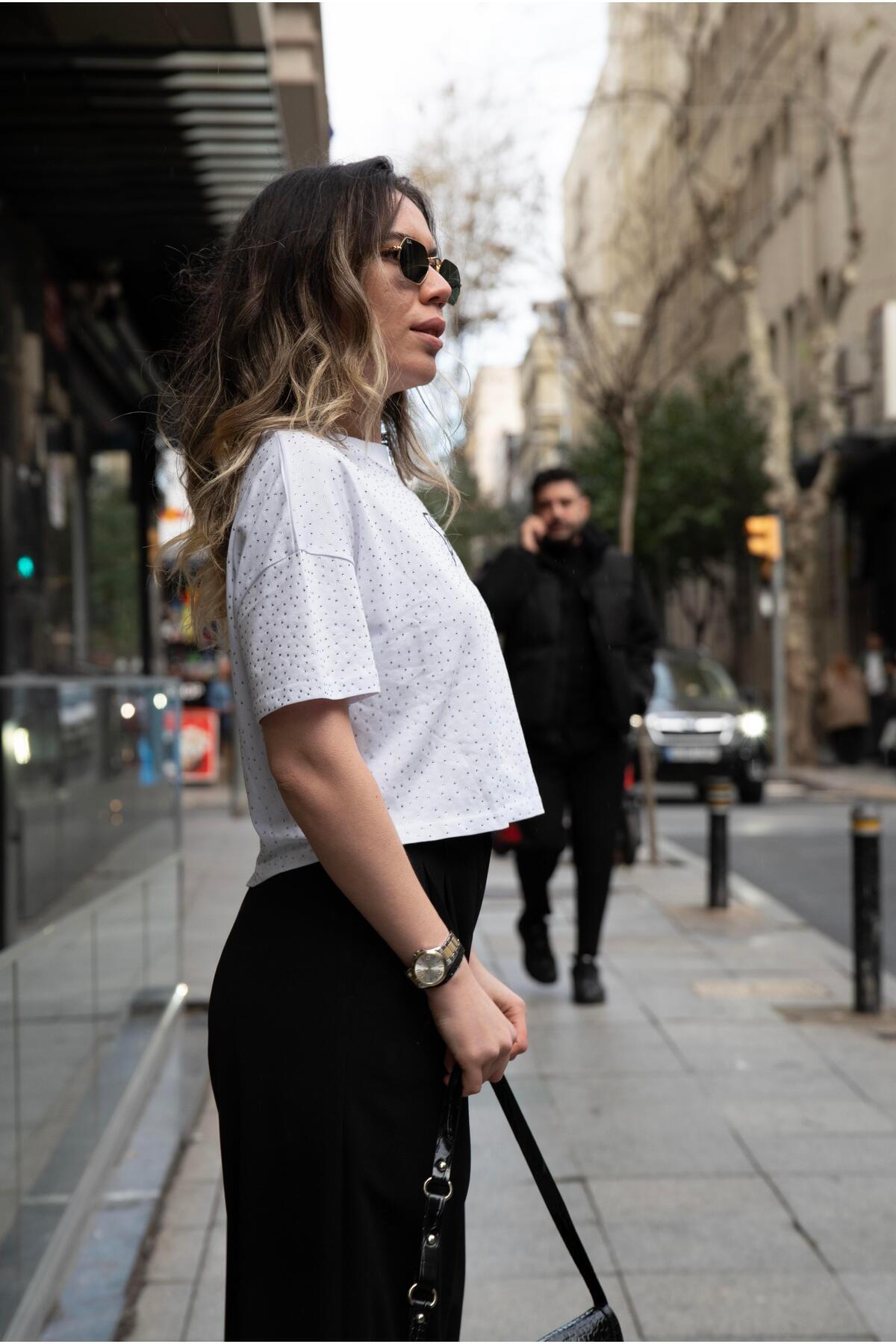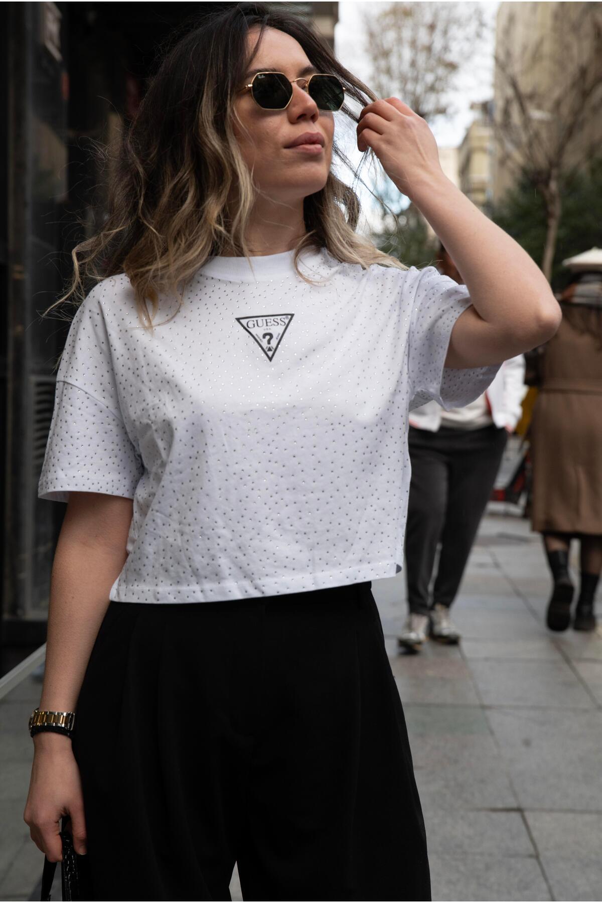 Kadın Logolu Taşlı Thişört Kadın Logolu Taşlı Thişört VN3379 XL