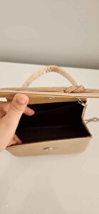 Kadın Saten Bej Taş Şerit Detaylı Abiye Omuz Çantası Kadın Saten Bej Taş Şerit Detaylı Abiye Omuz Çantası MB000555 تک سایز