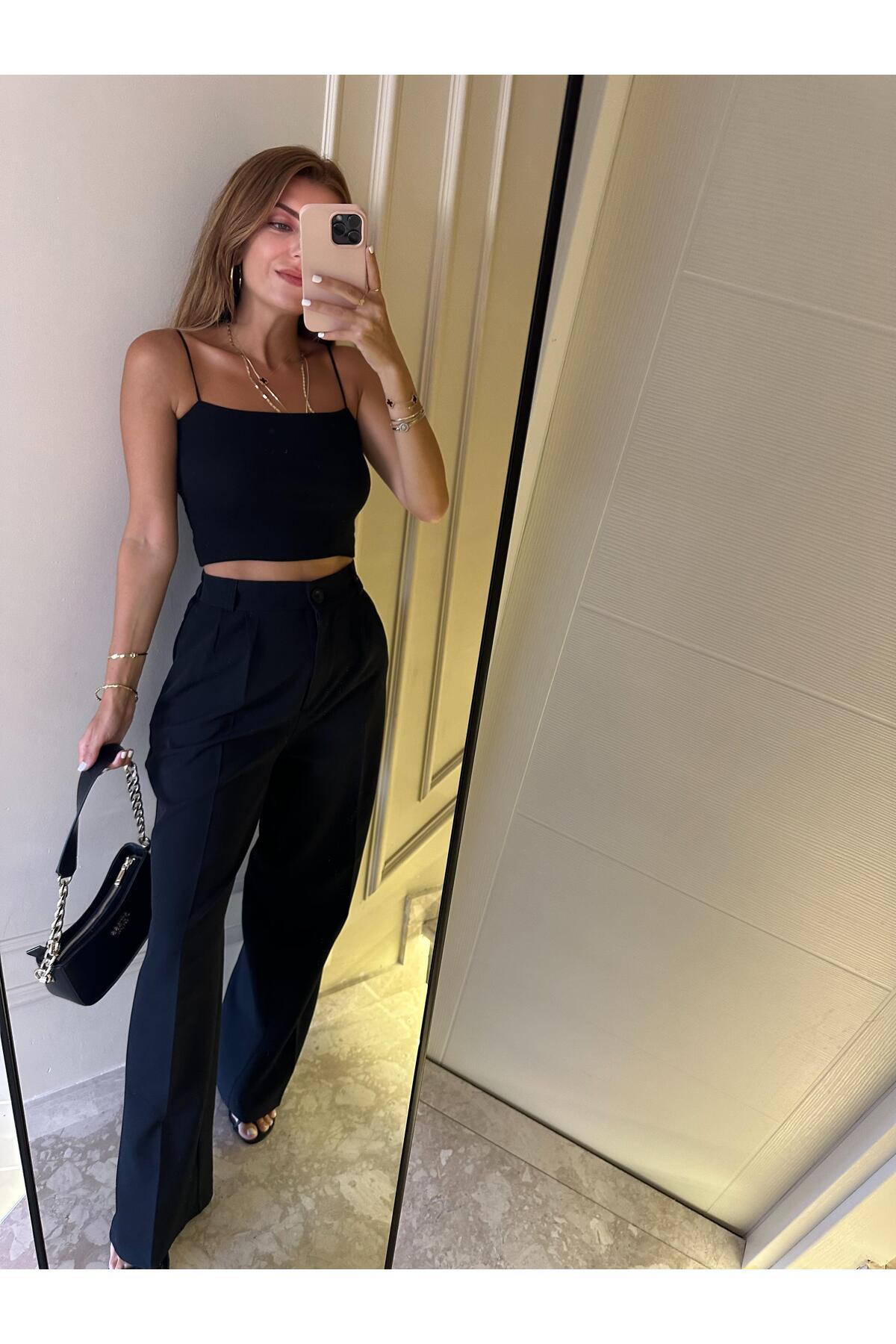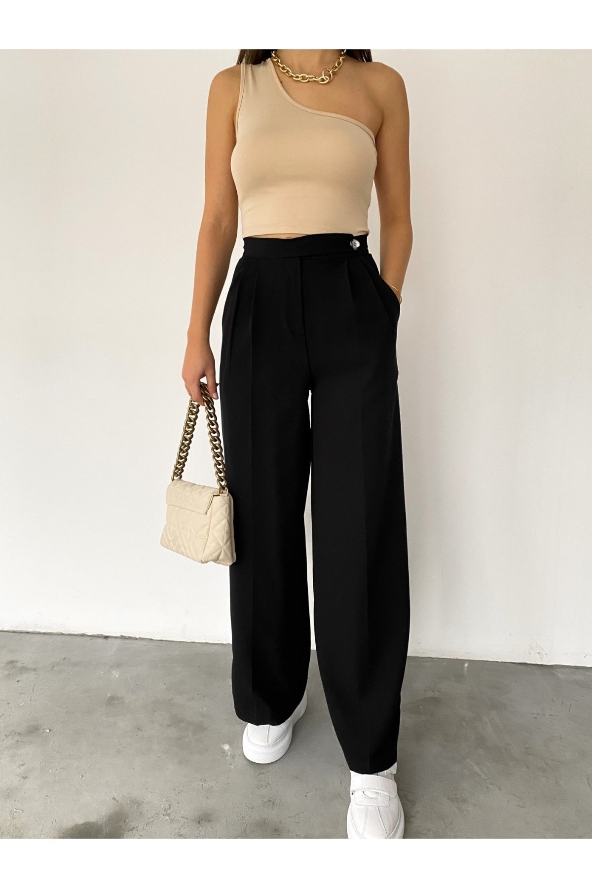 Siyah Atlas Dokuma Kumaş Önü Çımalı Palazzo Pantolon Siyah Atlas Dokuma Kumaş Önü Çımalı Palazzo Pantolon MCn810108 3XL