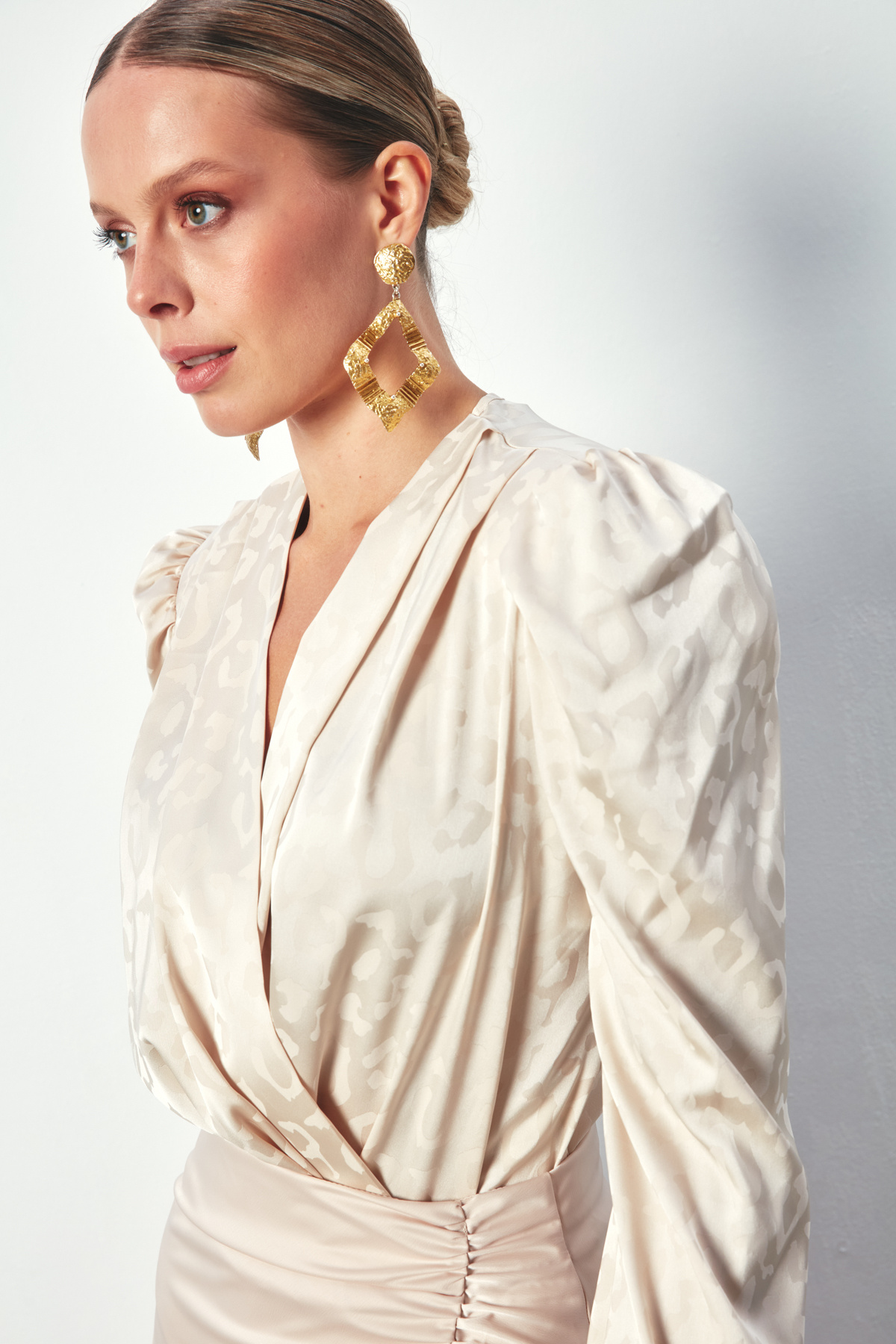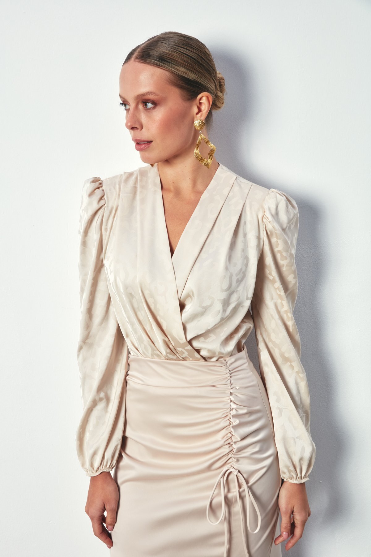 Kruvaze Desenli Bodysuit Bluz - Bej Kruvaze Desenli Bodysuit Bluz - Bej STN139KBL1382 42