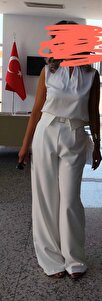 Bel Detaylı Geniş Paça Pantolon - Ekru Bel Detaylı Geniş Paça Pantolon - Ekru STN139KPA1245 42