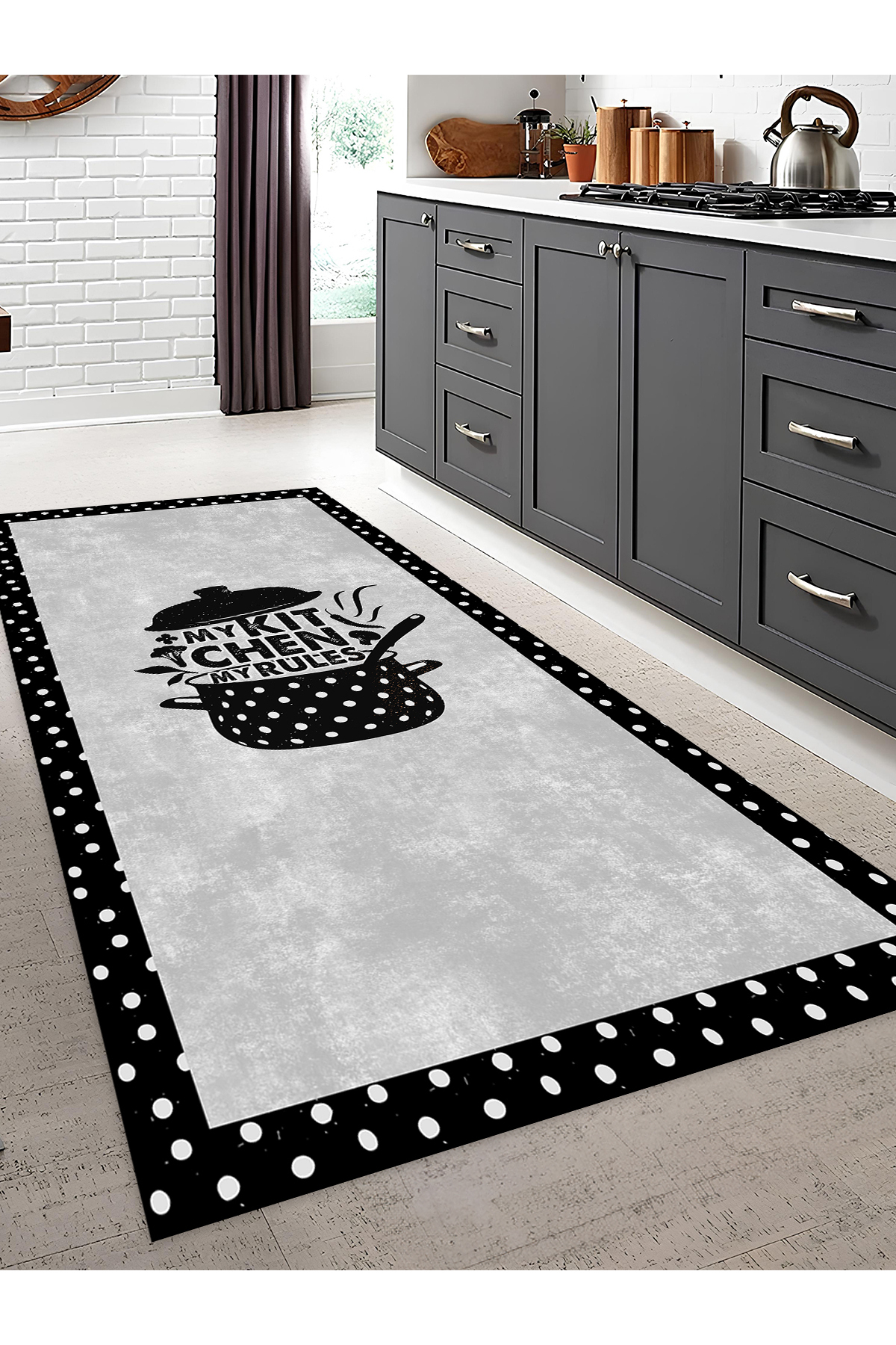 3D Dijital Baskılı Kaymaz Taban Yıkanabilir Renkli Modern Mutfak Halısı, N-MUTFAK-19-GRİ, 3D Dijital Baskılı Kaymaz Taban Yıkanabilir Renkli Modern Mutfak Halısı, N-MUTFAK-19-GRİ, 160 x 230