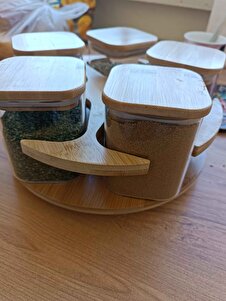 Döner Bambu Stantlı Kare Kavanoz Seti 6 Parça Döner Bambu Stantlı Kare Kavanoz Seti 6 Parça ALG-8500 تک سایز