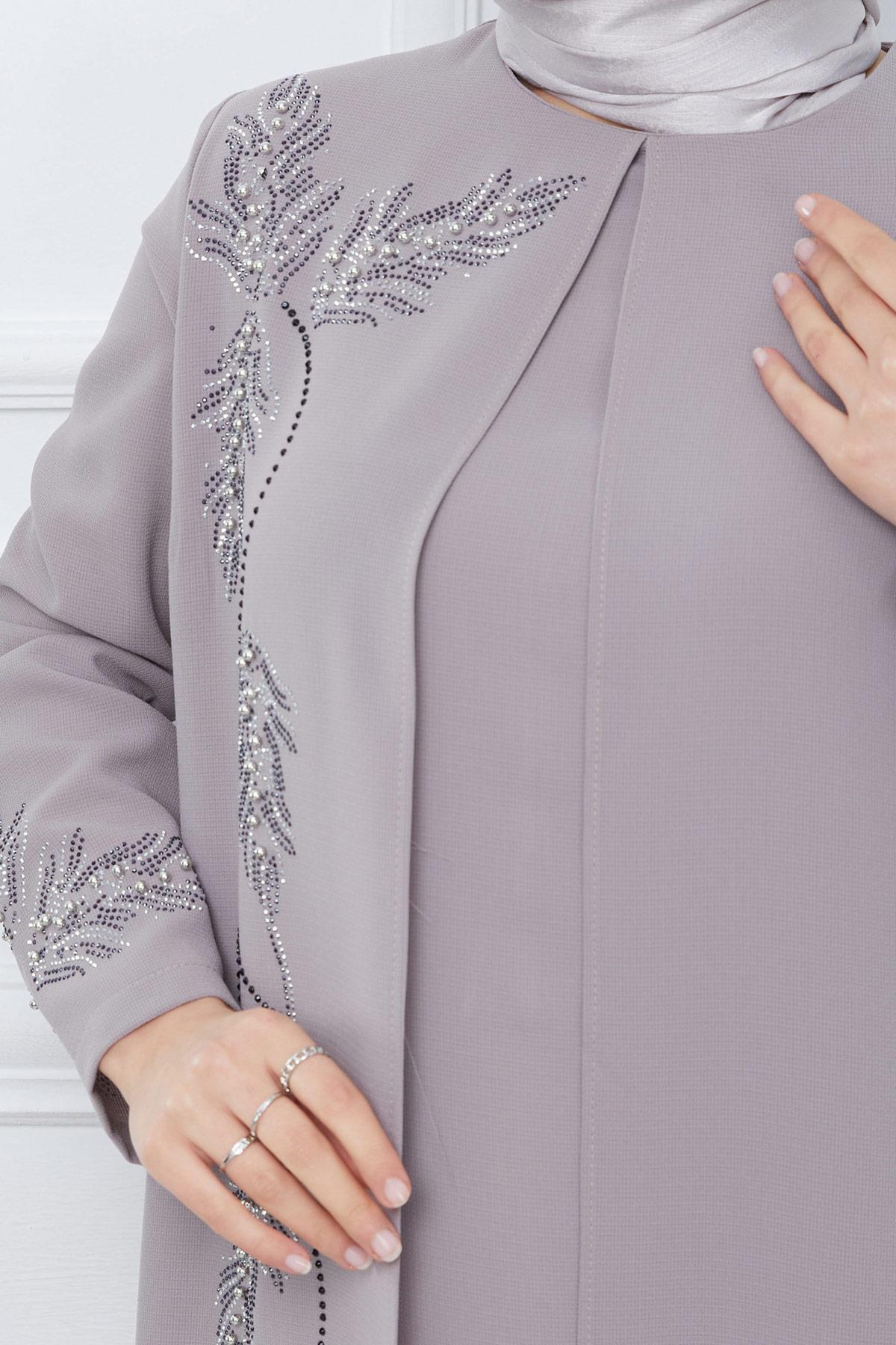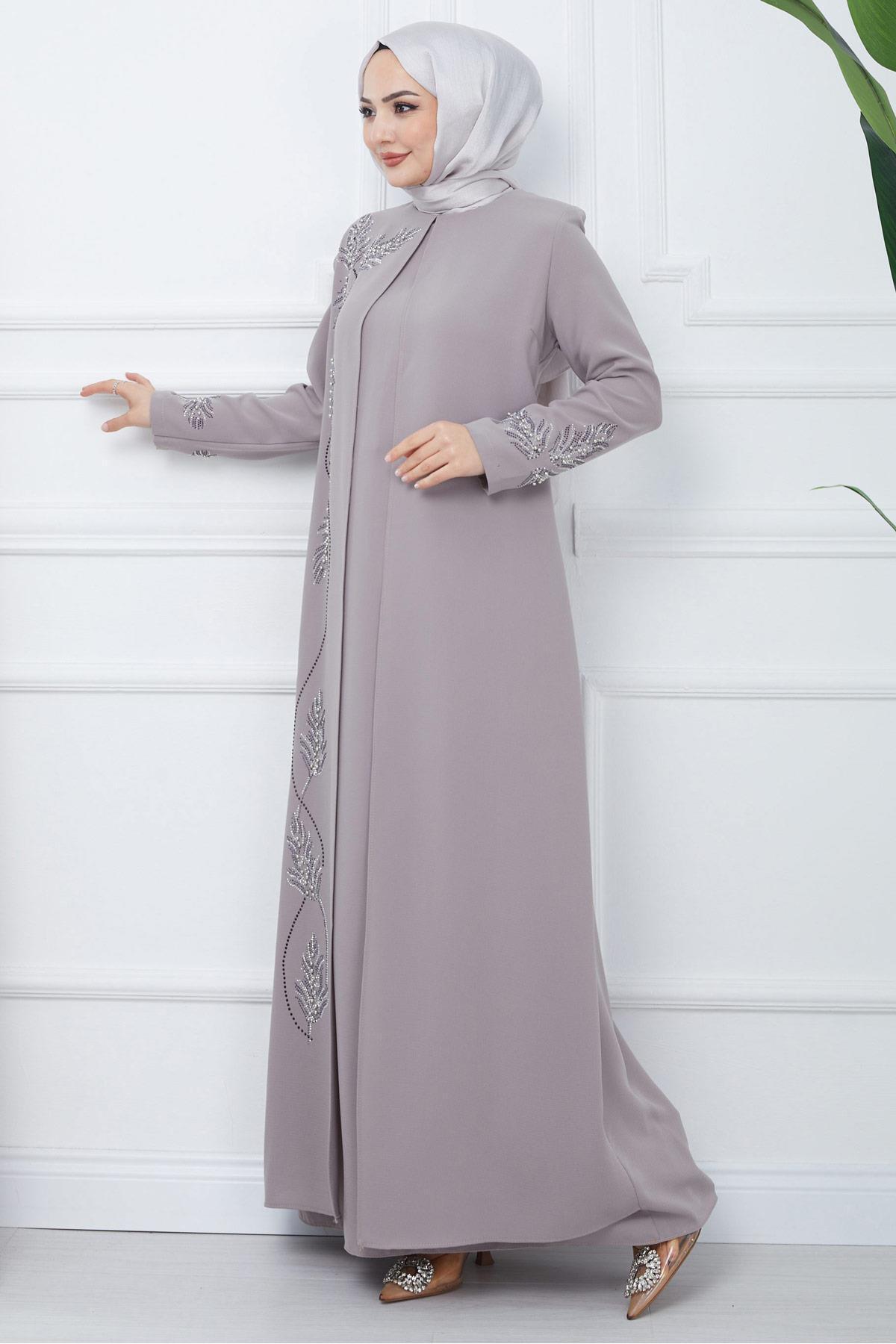 Büyük Beden Yaprak Taşlı Anne Elbisesi Pembe Hm2350 Büyük Beden Yaprak Taşlı Anne Elbisesi Pembe Hm2350 58