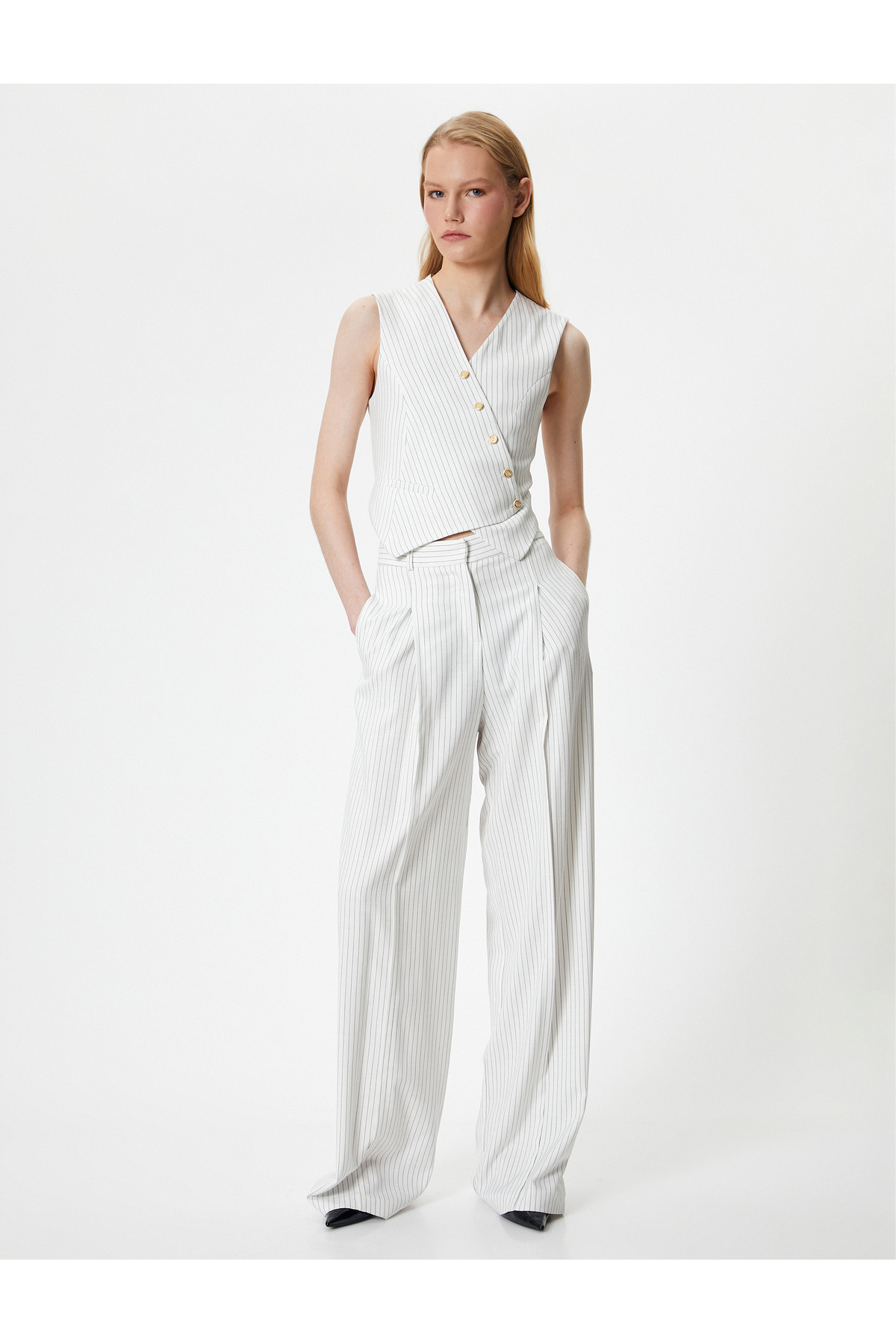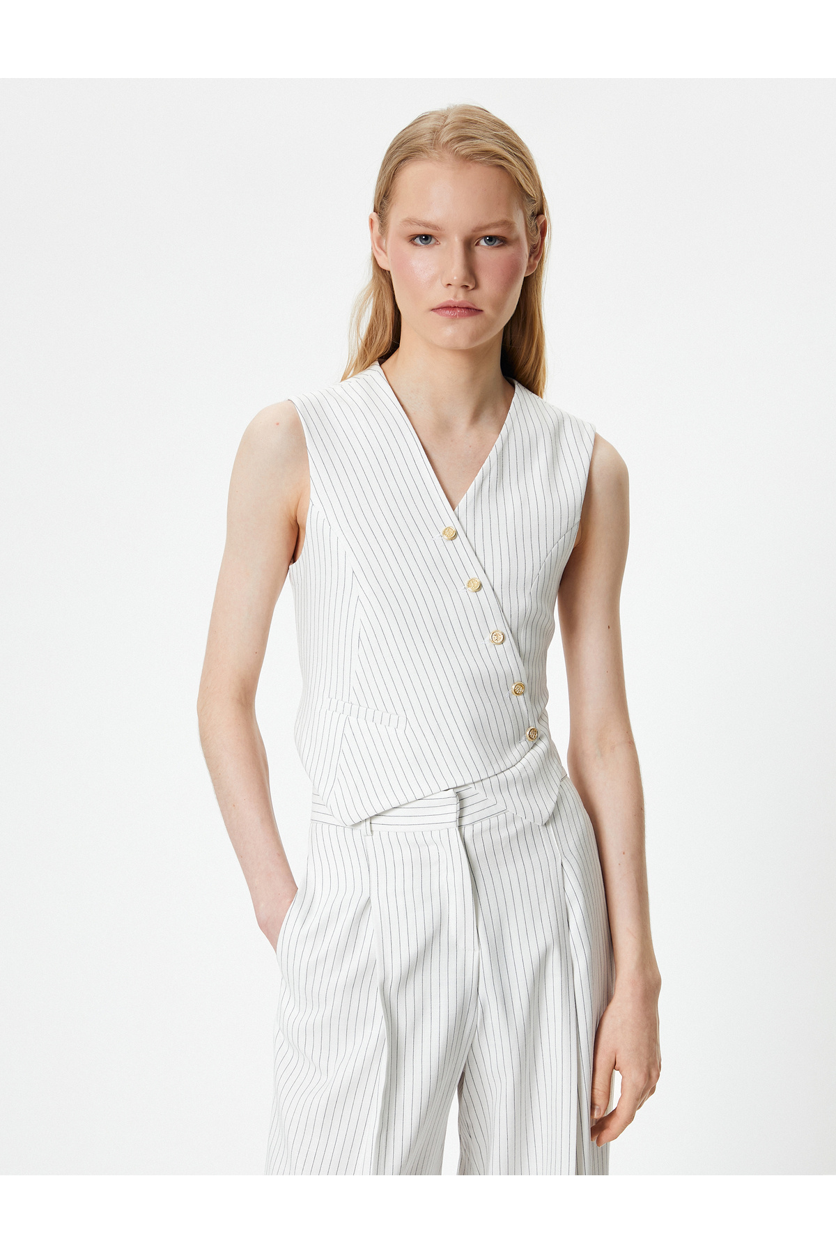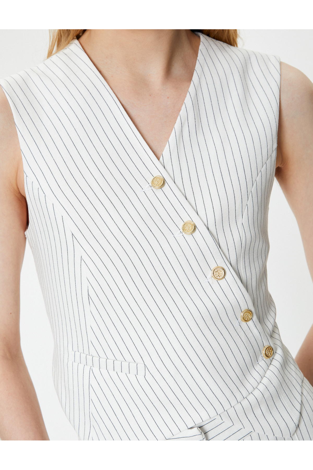Kruvaze Yelek V Yaka Gold Düğmeli Kruvaze Yelek V Yaka Gold Düğmeli 4SAK20036UW 42