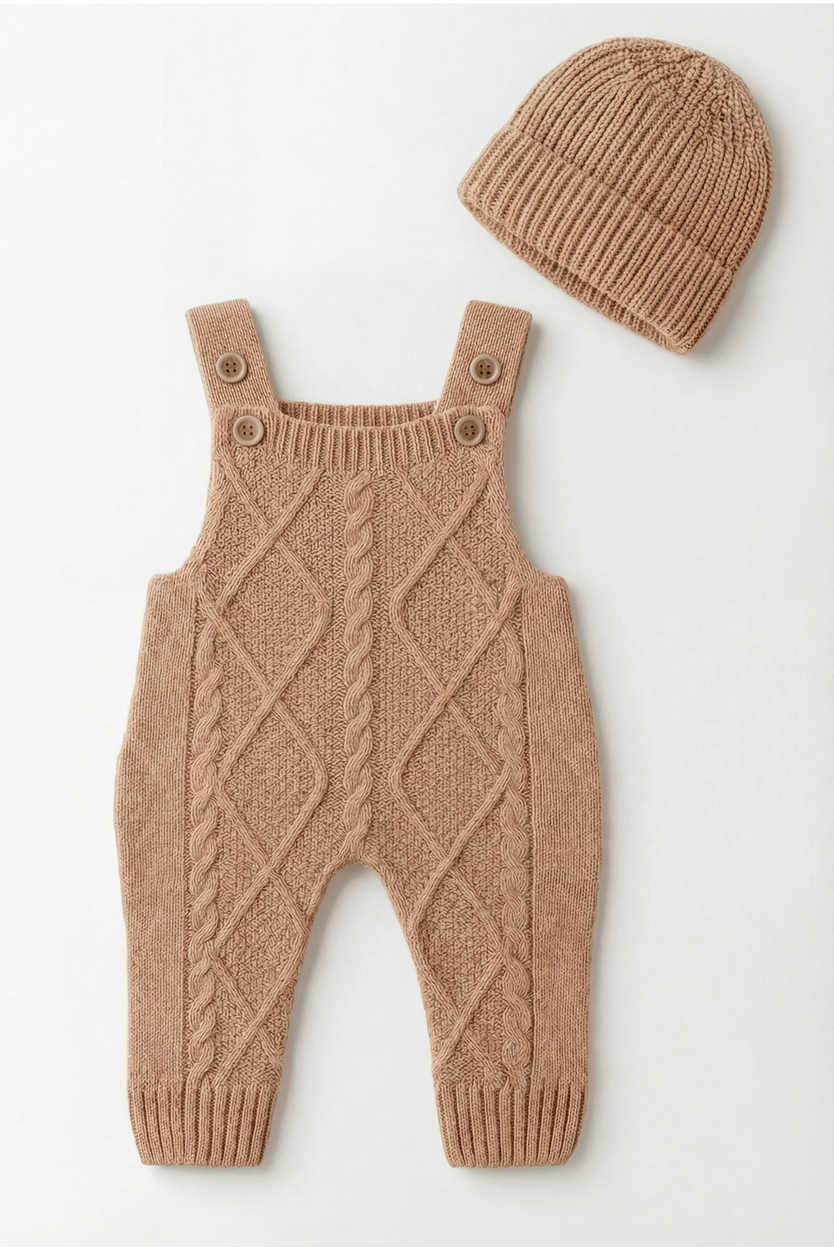 Kız&Erkek Bebek Cep Detaylı Ayarlanabilir Askılı Selanik Örgü Şapkalı Triko Salopet Kız&Erkek Bebek Cep Detaylı Ayarlanabilir Askılı Selanik Örgü Şapkalı Triko Salopet 3702-SELANİK-SALOPET 18-24 AY